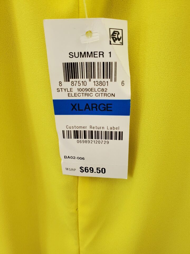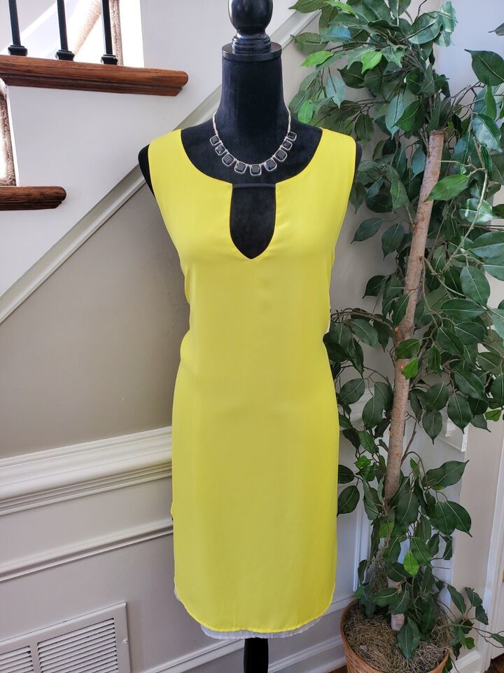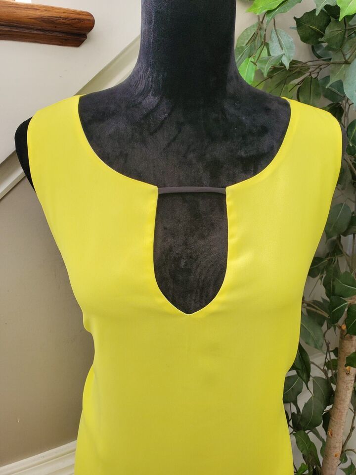 Bar III Women's Yellow Polyester Round Neck Sleeveless Knee Length Dress Size XL