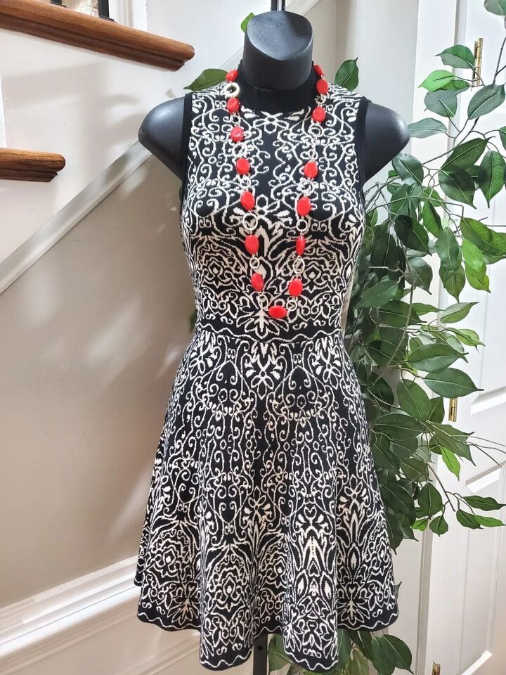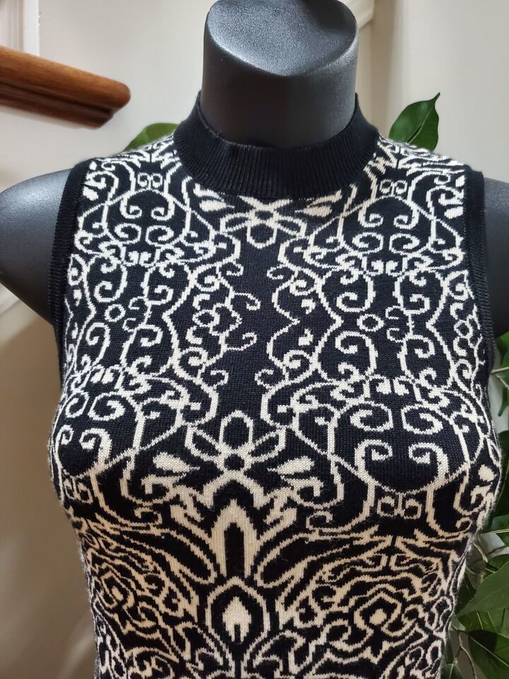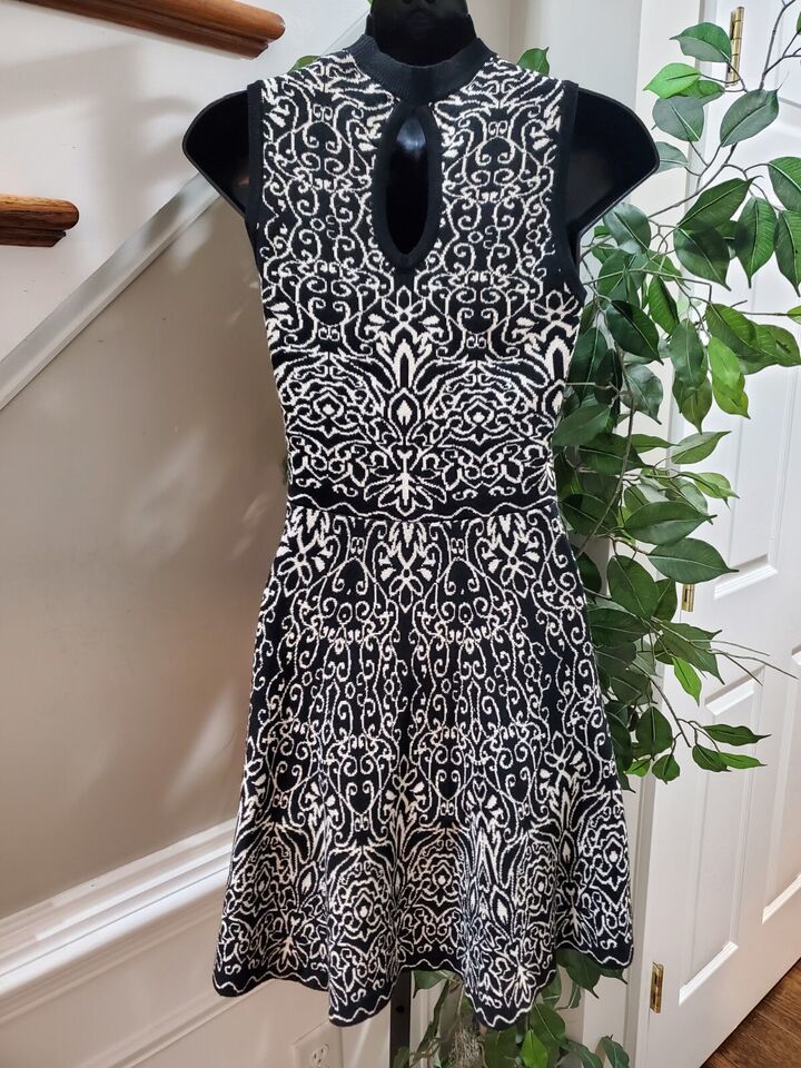 Xhilaration Women Black & White Rayon Mock Neck Sleeveless Knee Length Dress XS