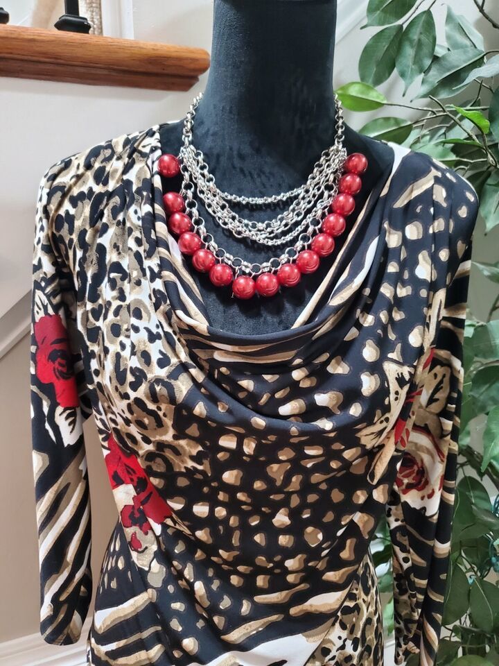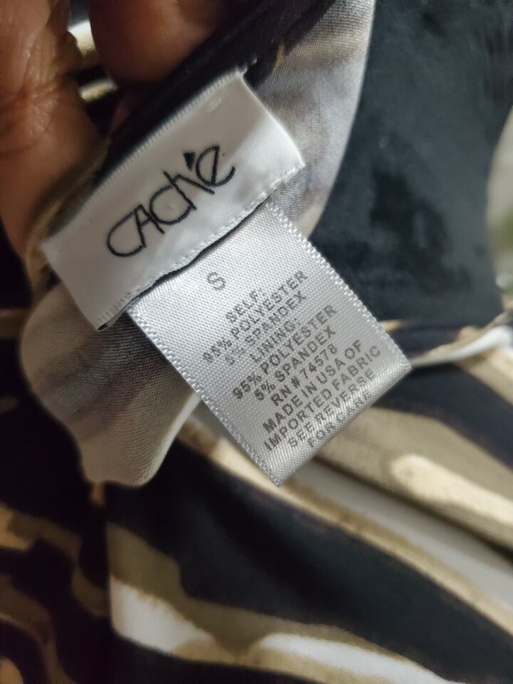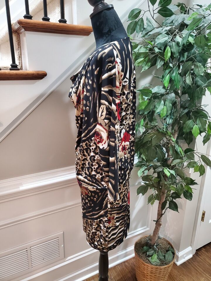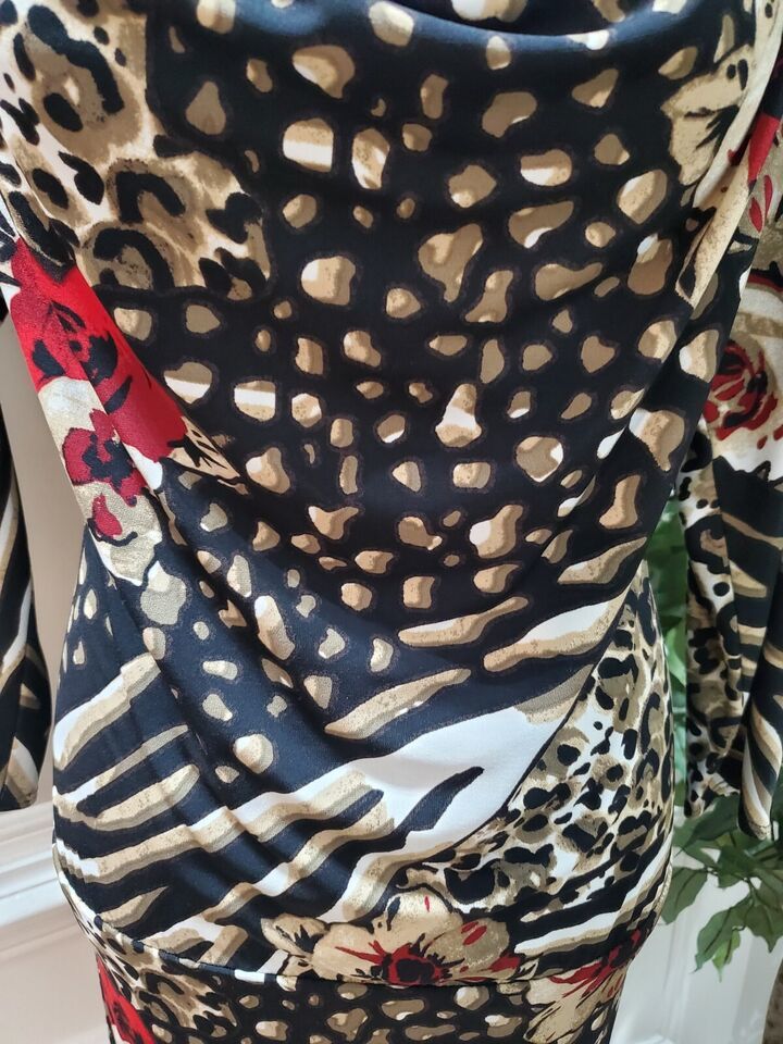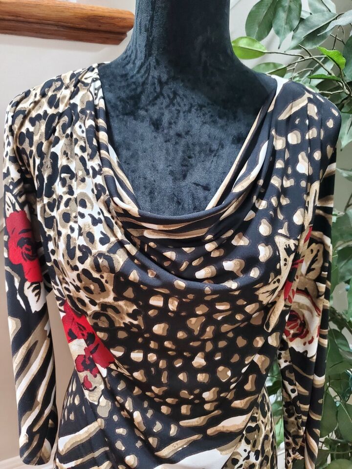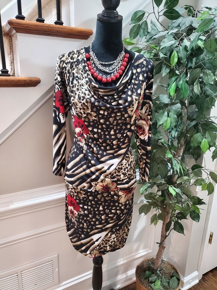 Cache Animal Print Polyester Cowl Neck Long Sleeve Knee Length Dress Size S