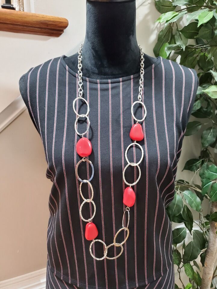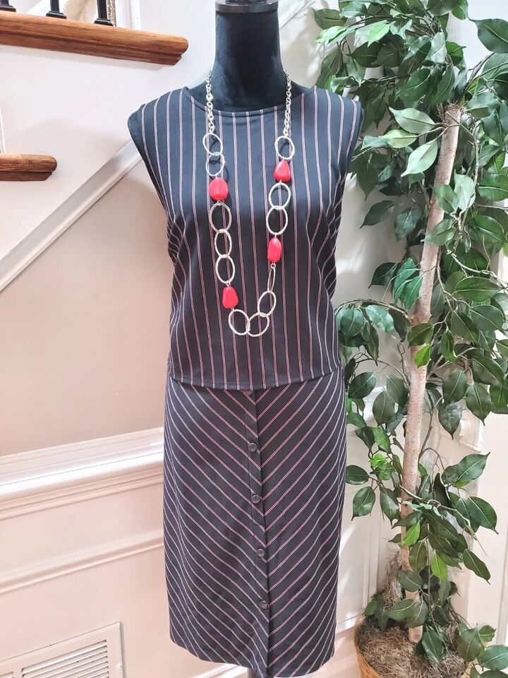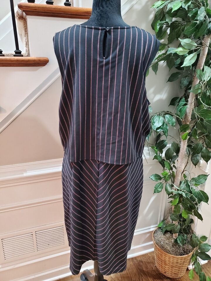J.Jill Women's Black Striped Polyester Round Neck Sleeveless Knee Length Dress L.