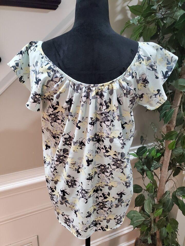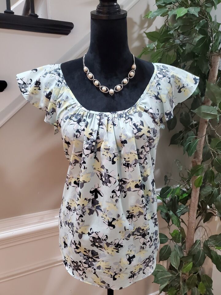 Banana Republic Multicolor Floral Scoop Neck Flutter Sleeve Top Blouse Small