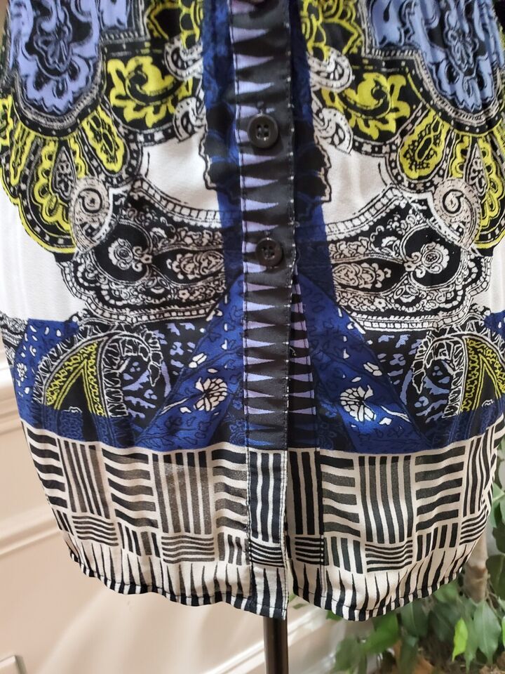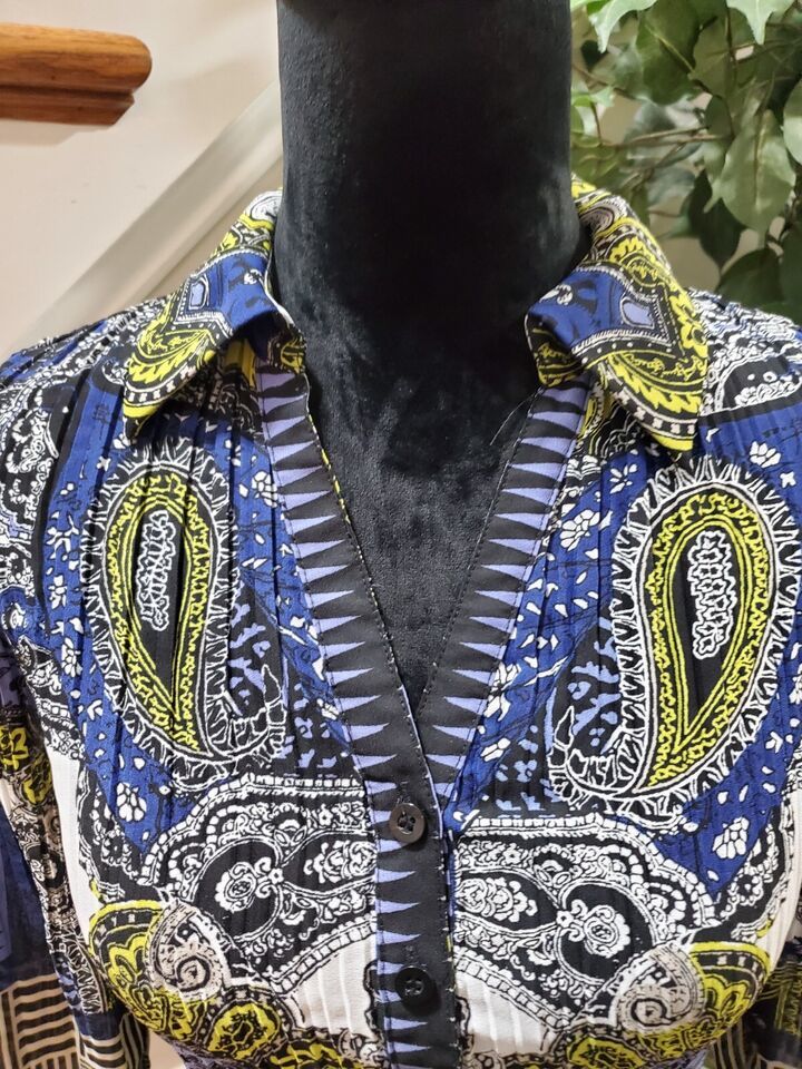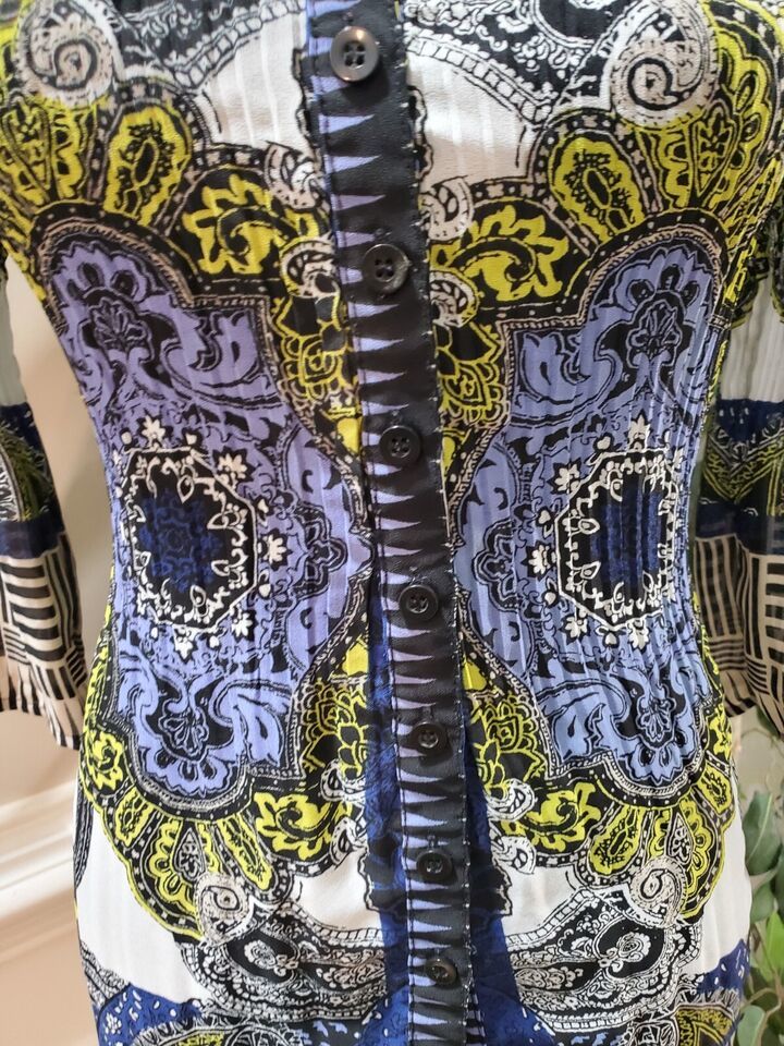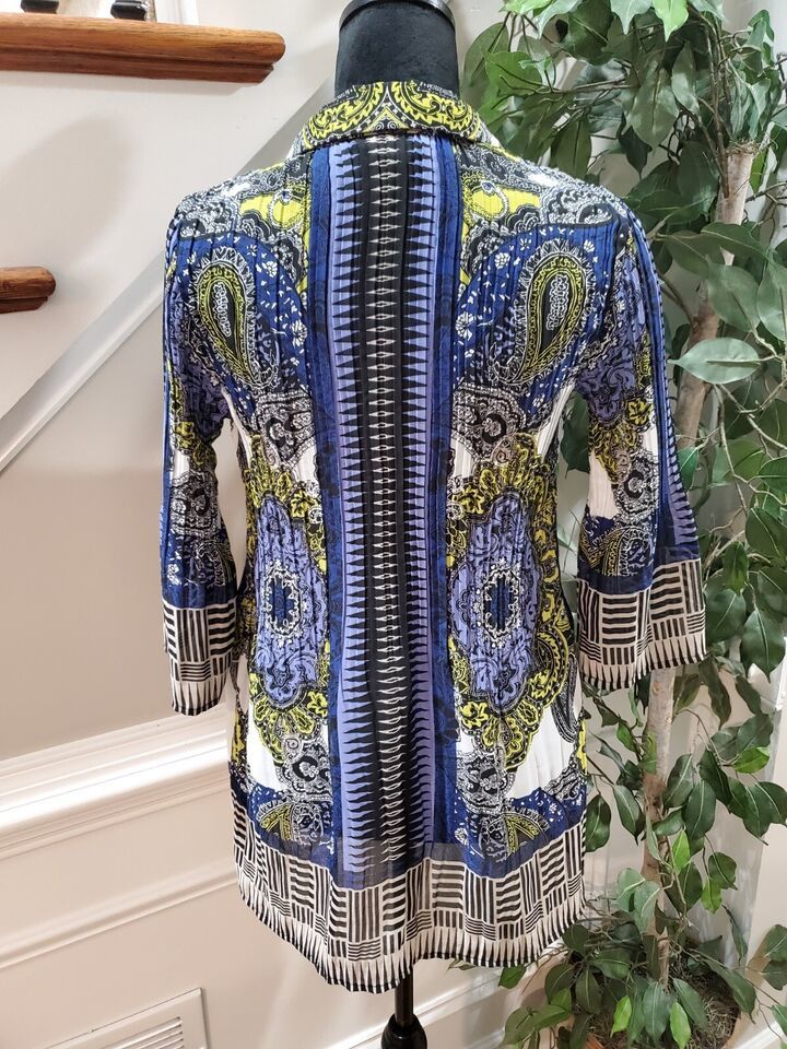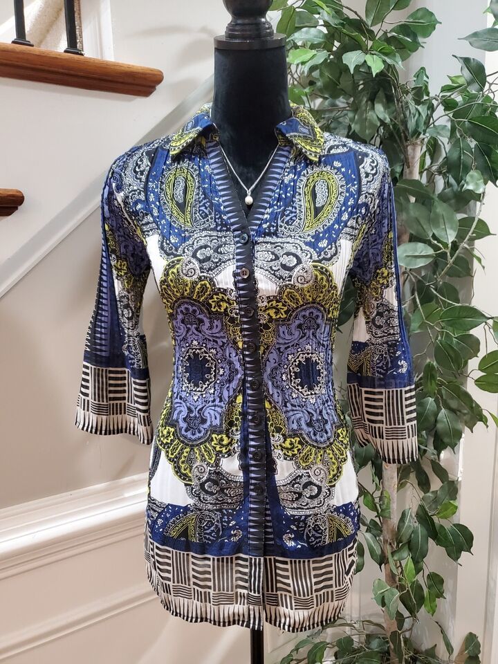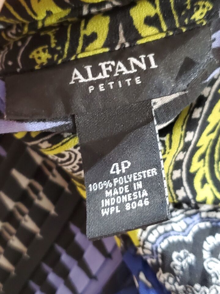 Elevate your casual look with this beautiful Alfani blouse. The long sleeve, collared shirt features a stunning paisley pattern that adds a touch of elegance to any outfit. The button-front design in size 4P is perfect for petites and the 100% polyester material ensures comfort all year round.