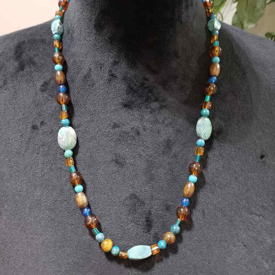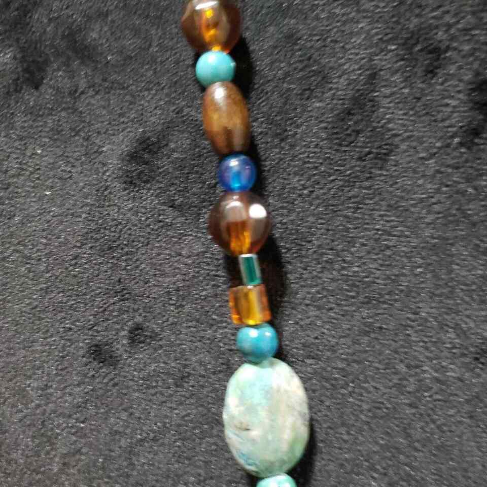 Vintage Tibetan Natural Turquoise, Amber, Carnelian, Agate Bead Necklace