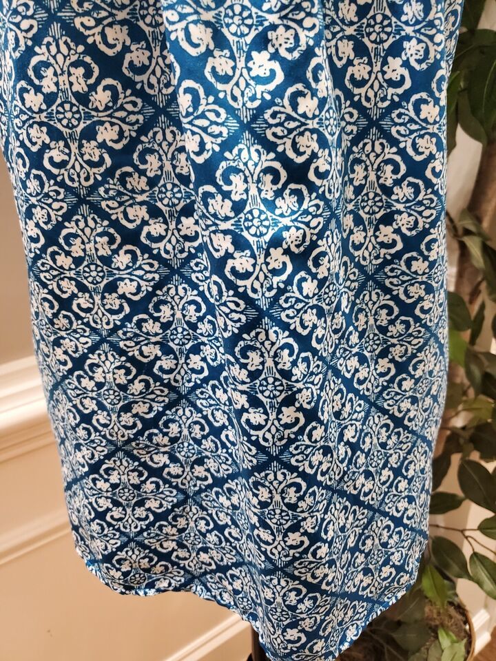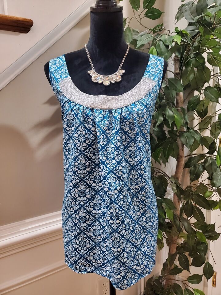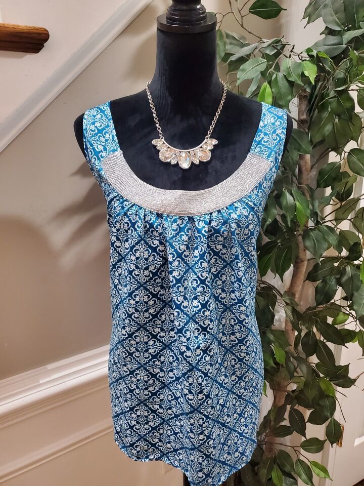 Gap Women Blue White Polyester Scoop Neck Sleeveless Casual Top Blouse Size XL.