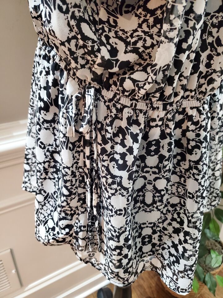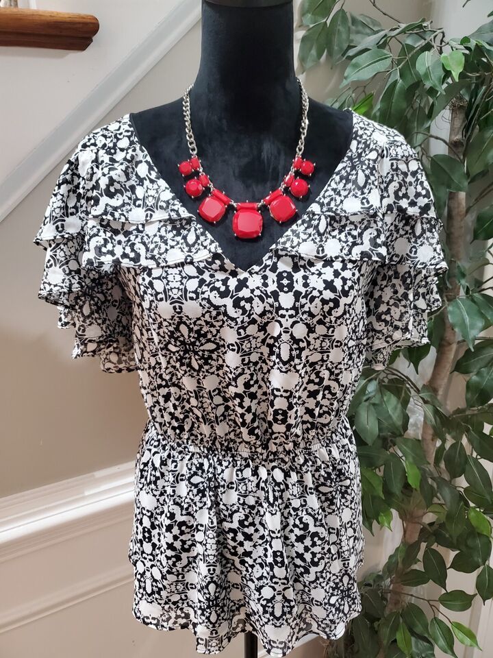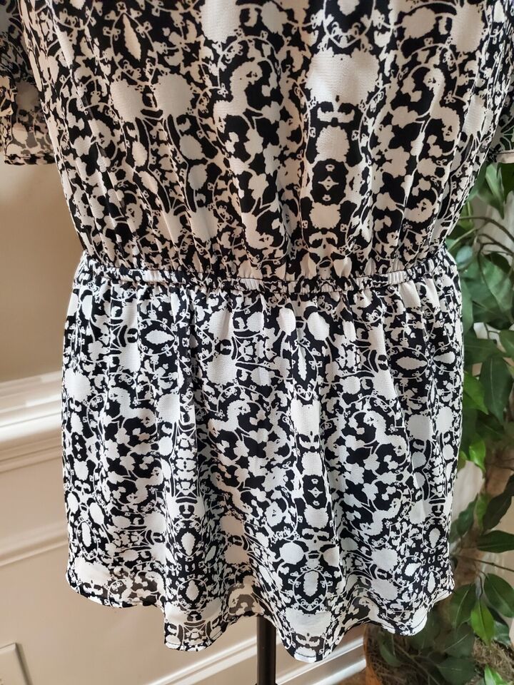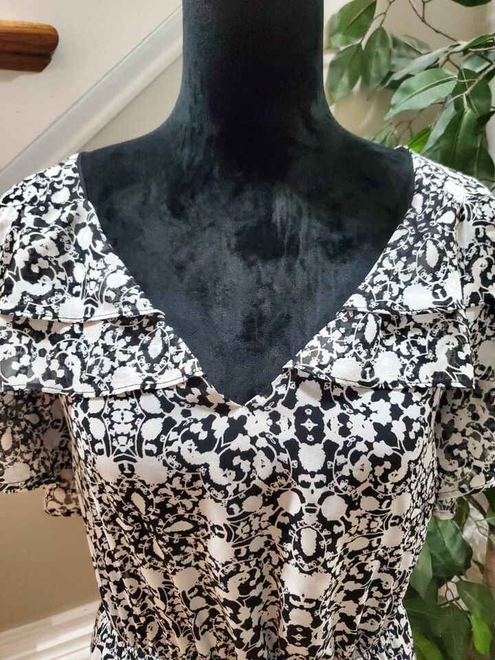 Lane Bryant Women Black & White Polyester V-Neck Short Sleeve Top Blouse Size 16
