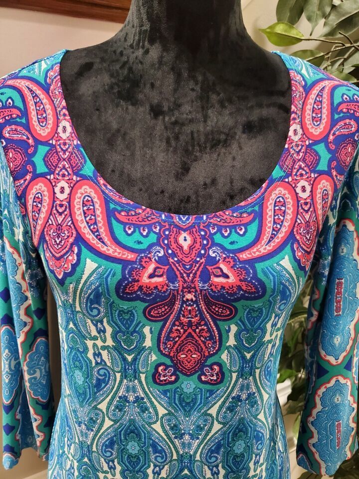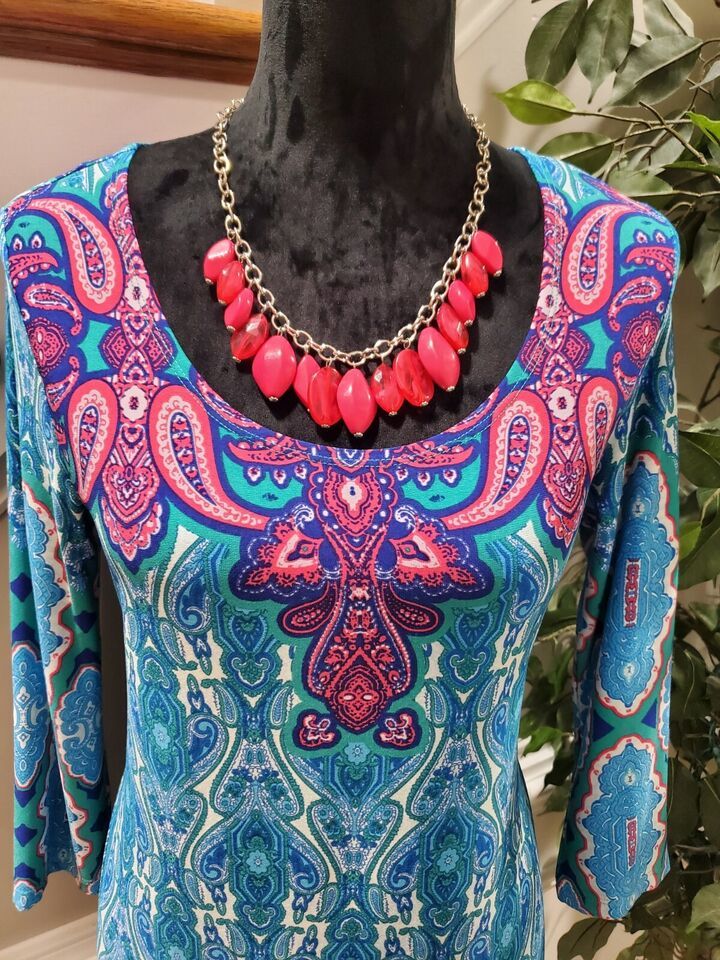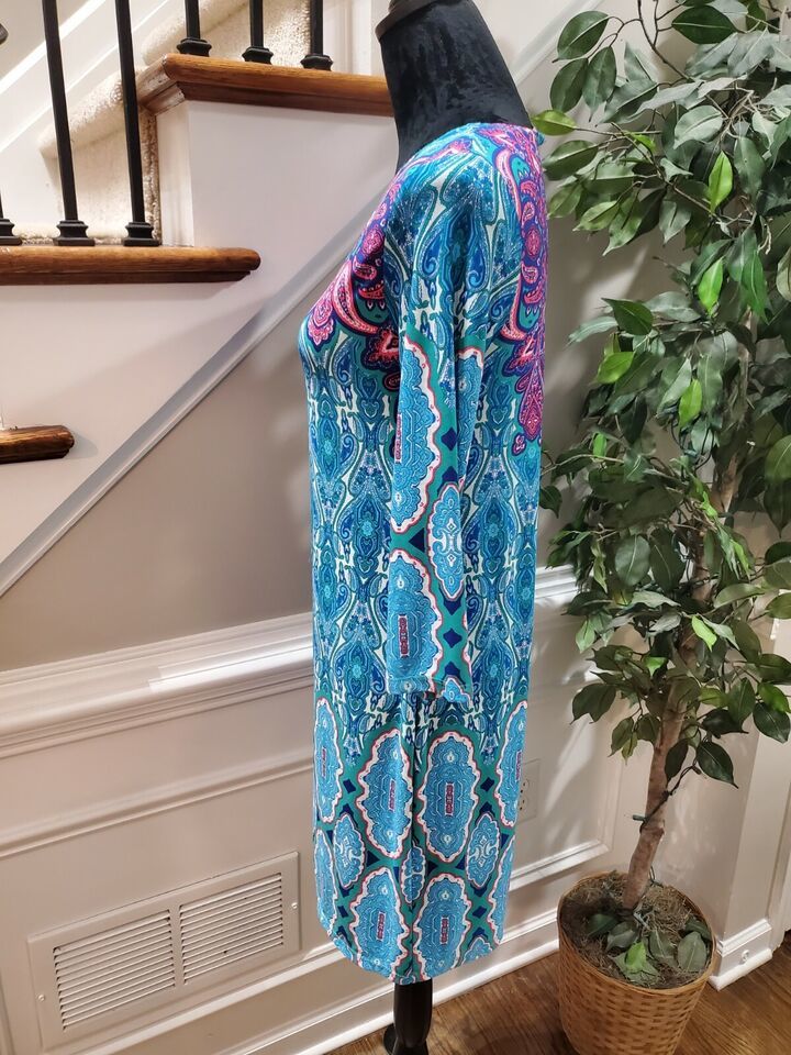 Neiman Marcus Women's Blue Polyester Round Neck Long Sleeve Knee Length Dress S