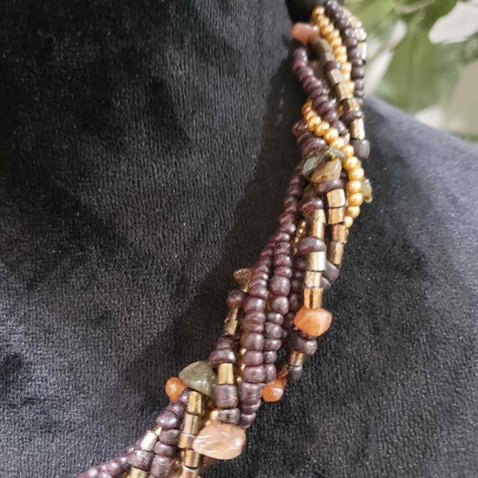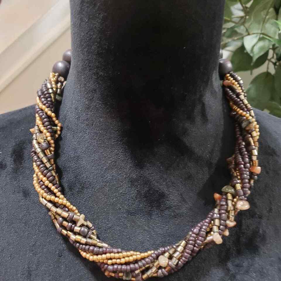 Coldwater Creek Women's Gold Brown Multilayer Round Twisted Beaded Necklace