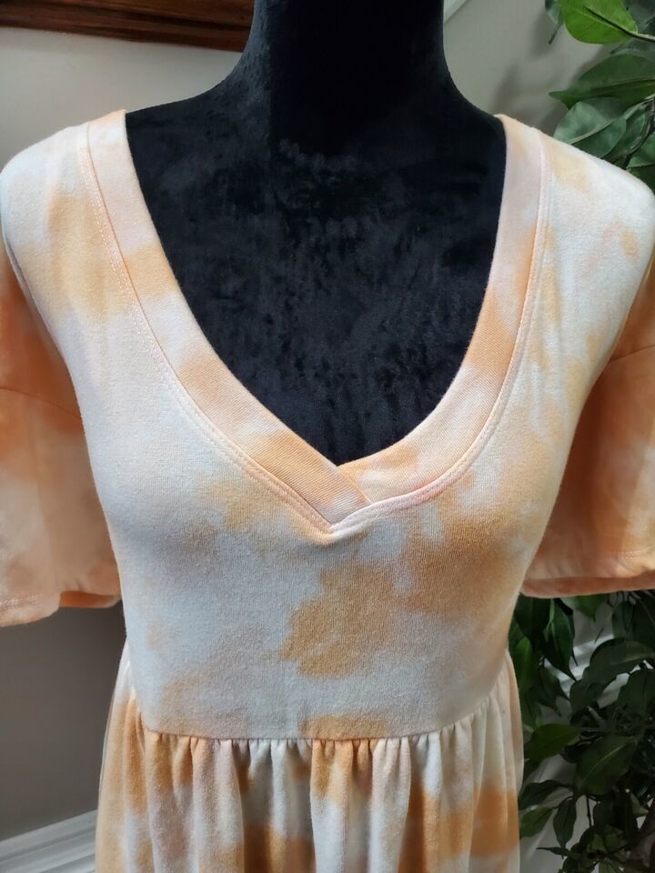 Wild Fable Womens Orange Cotton V-Neck Short Sleeve Pleated Knee Length Dress XL