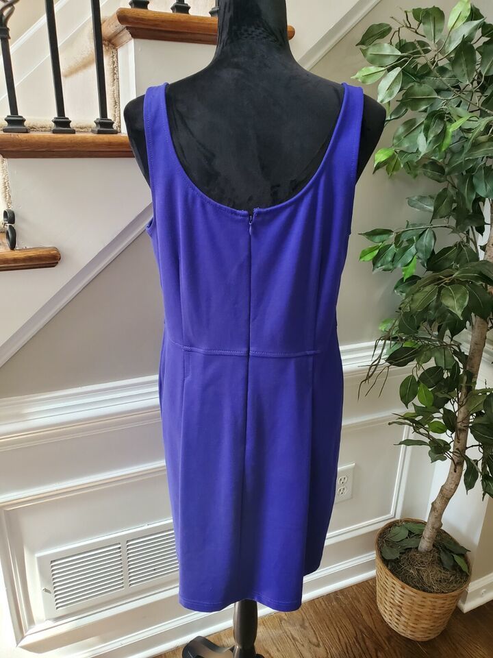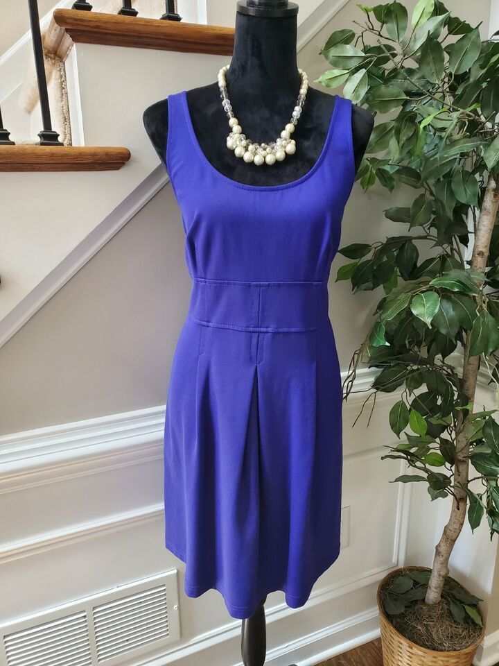 Loft Women's Solid Blue Rayon Round Neck Sleeveless Knee Length Dress Size 12P