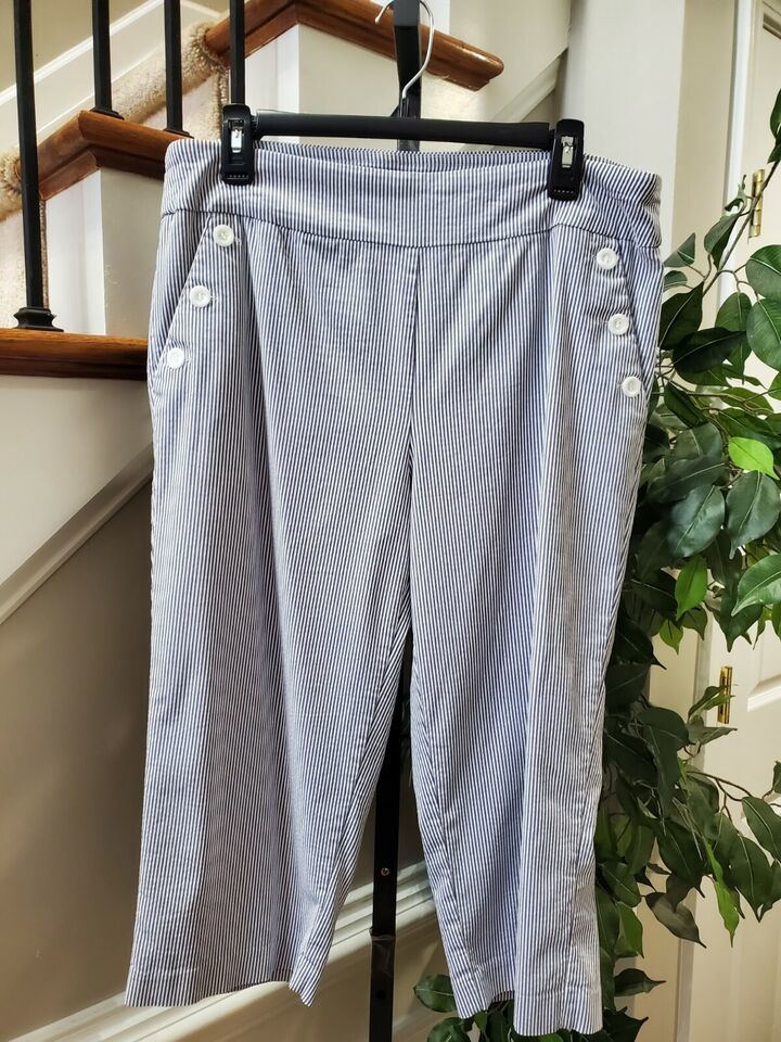 Counterparts Women Blue/White Lined Rayon & Nylon Mid Rise Straight Legs Pant 16