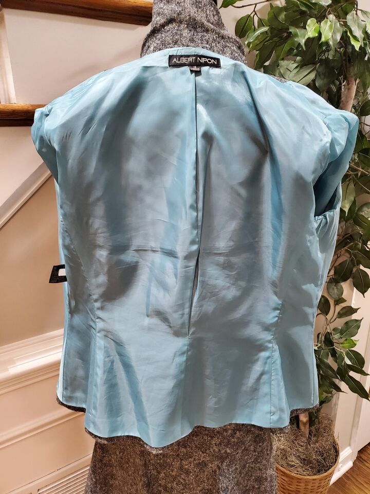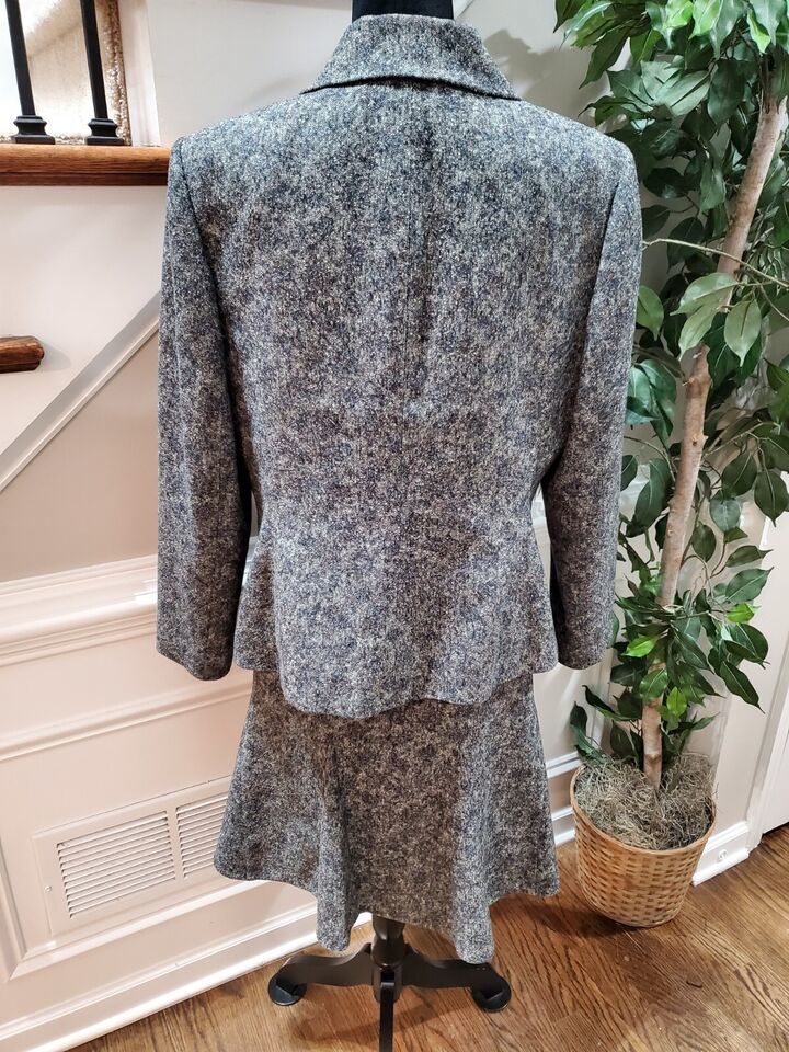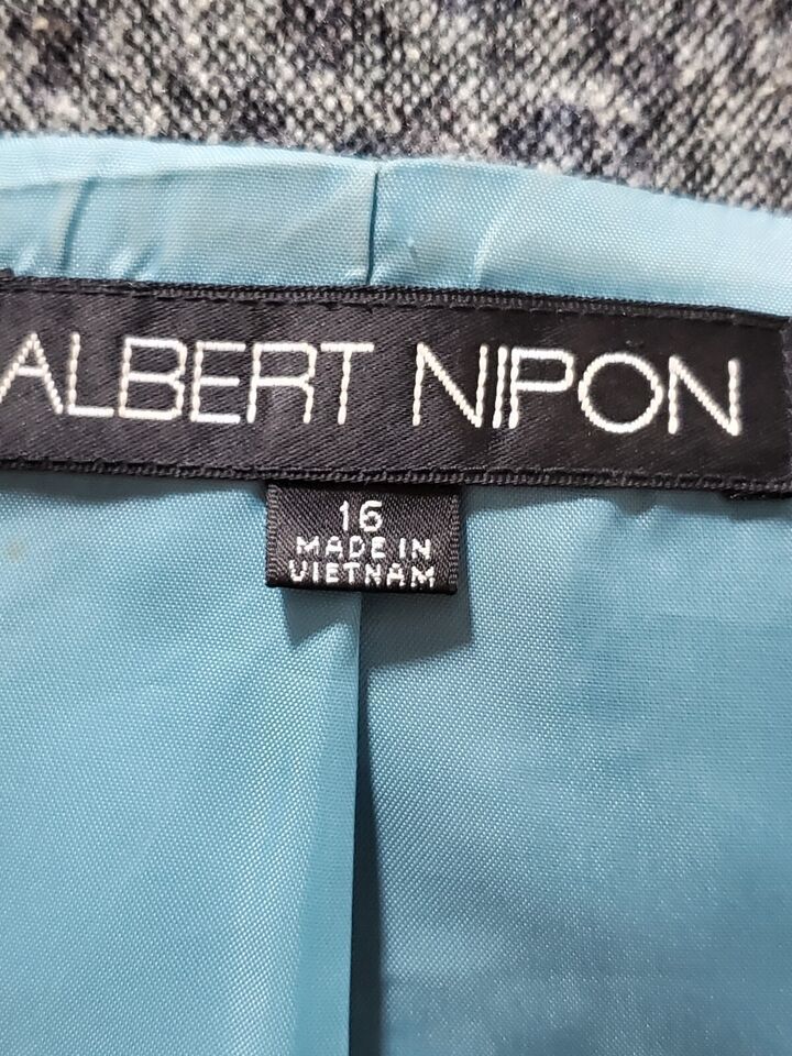 Albert Nipon Women's Gray Polyester Long Sleeve Jacket & Skirt 2 Piece Suit 16