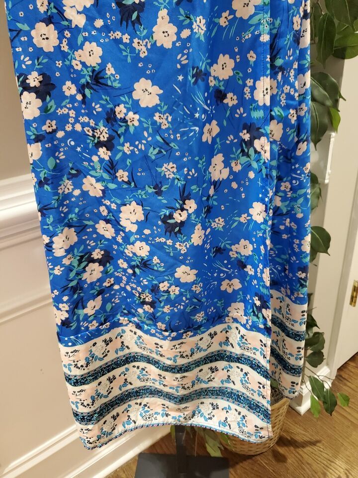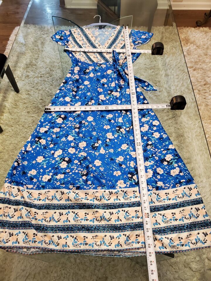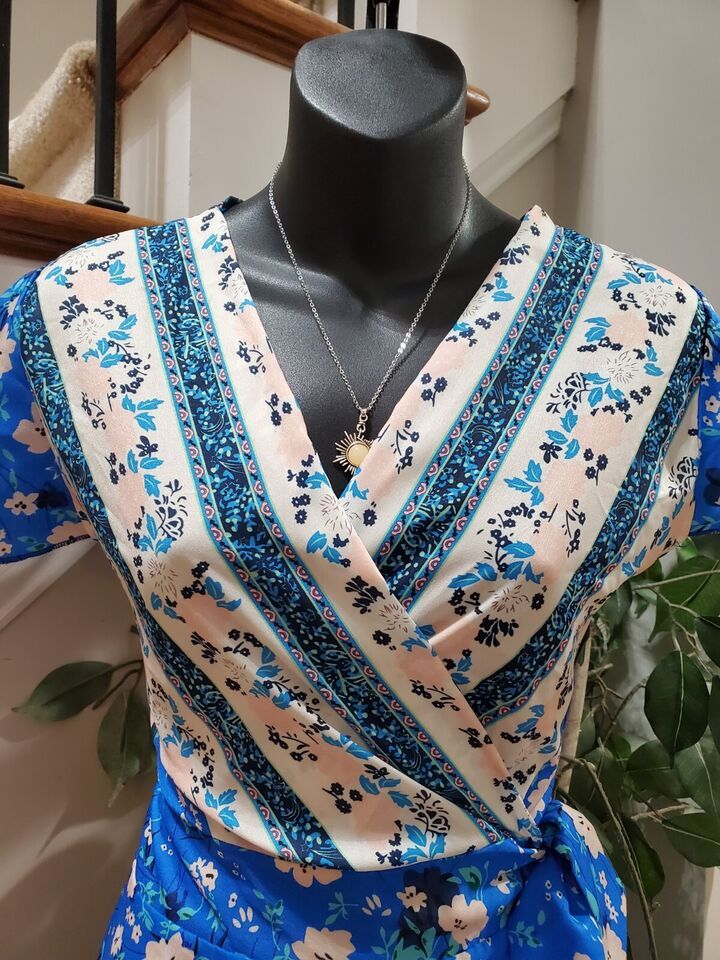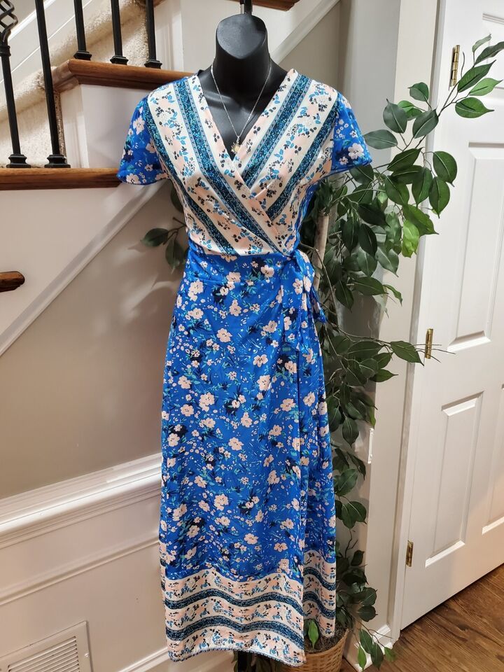 Womens Multi Floral Cotton Wrap V Neck Casual Short Sleeve Long Maxi Dress XL.