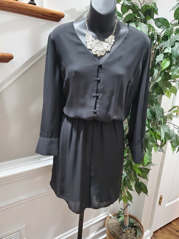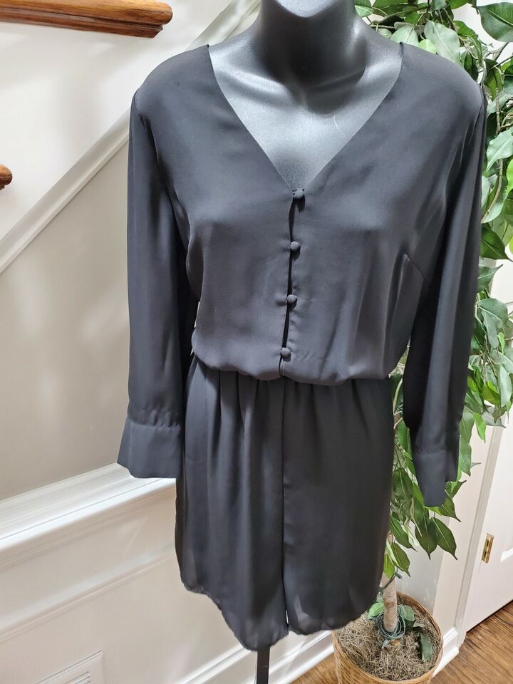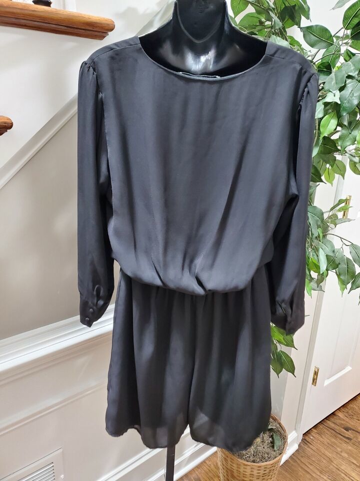 Collective Concepts Women Black Polyester V-Neck LongSleeve Knee Length Romper L