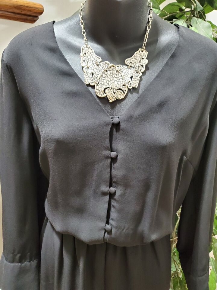 Collective Concepts Women Black Polyester V-Neck LongSleeve Knee Length Romper L.