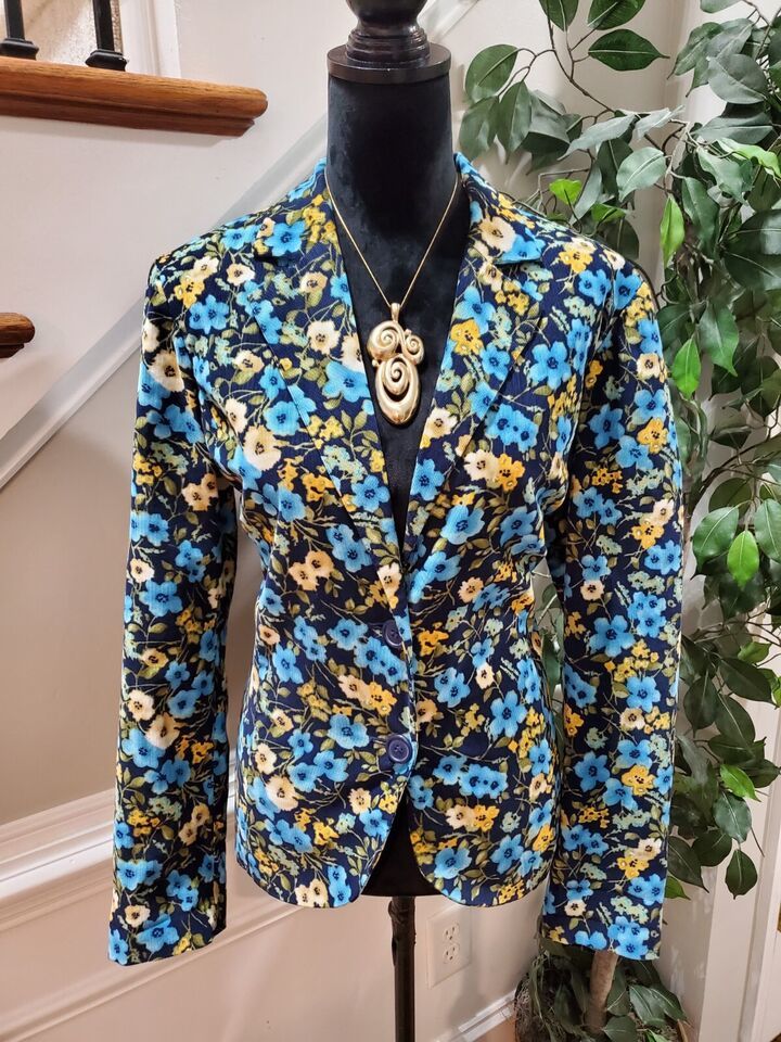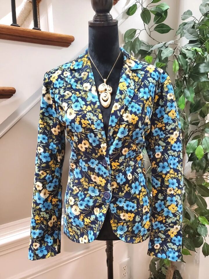 First Issue Women Floral Cotton Single Breasted Long Sleeve Casual Blazer Size L.