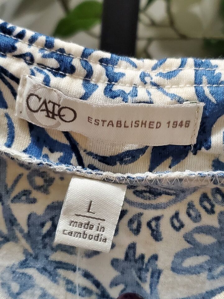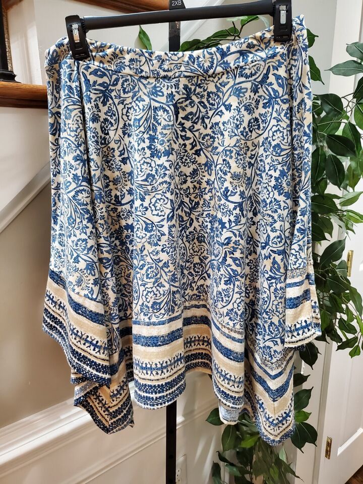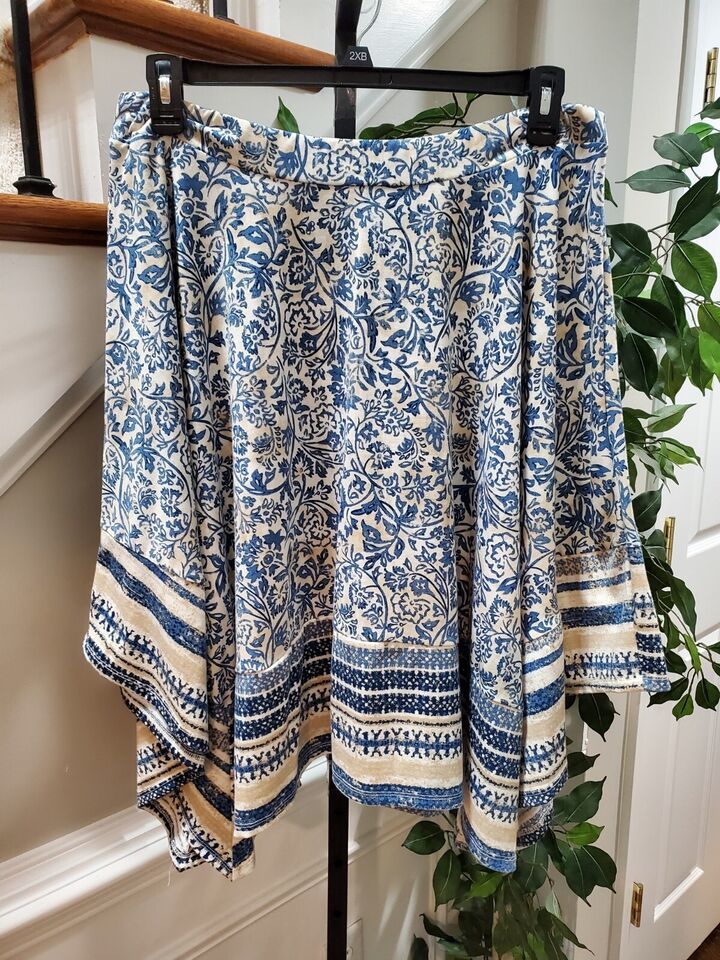 Cato Women's White Blue Floral Polyester A-Line Sportswear Knee Length Skirt L