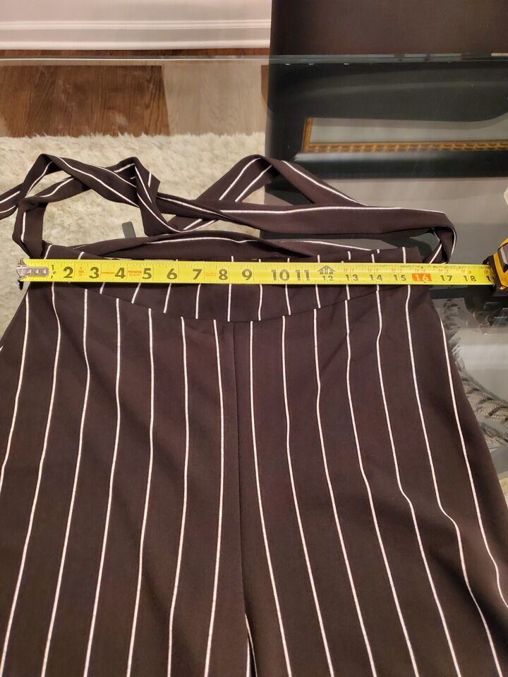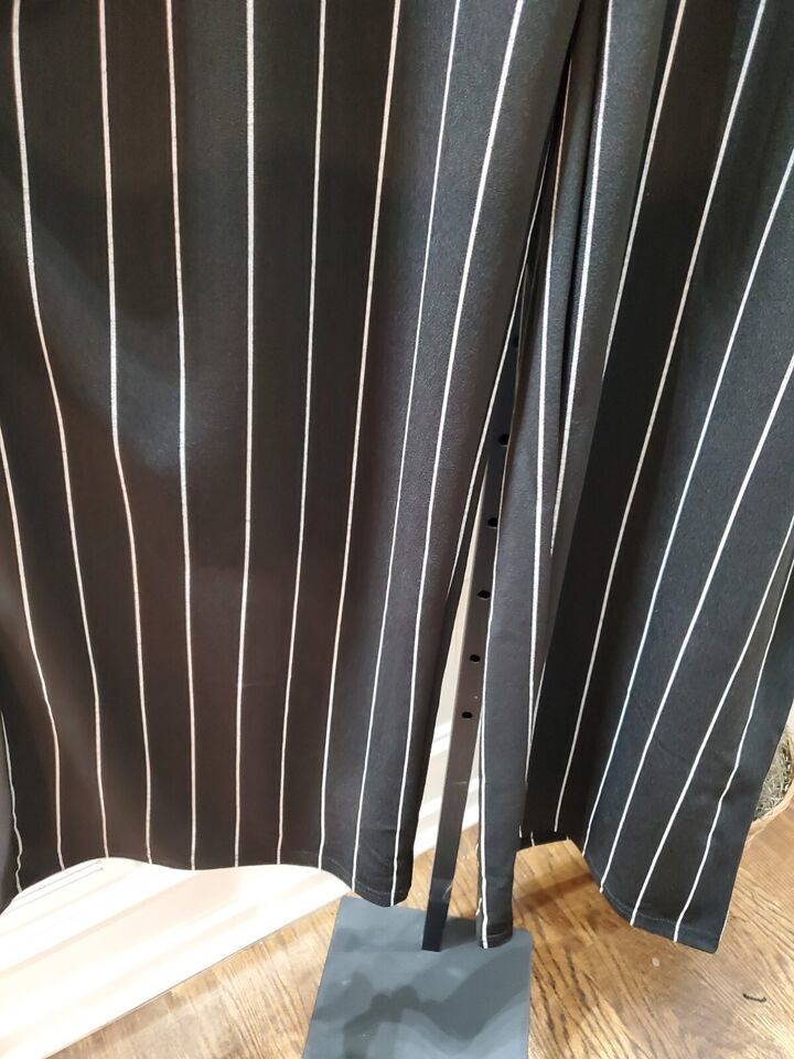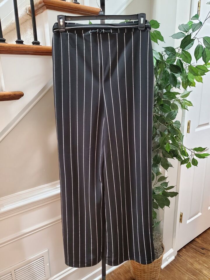 Boohoo Women's Black Striped Polyester Mid Rise Wide Legs Comfort Waist Pant 14.