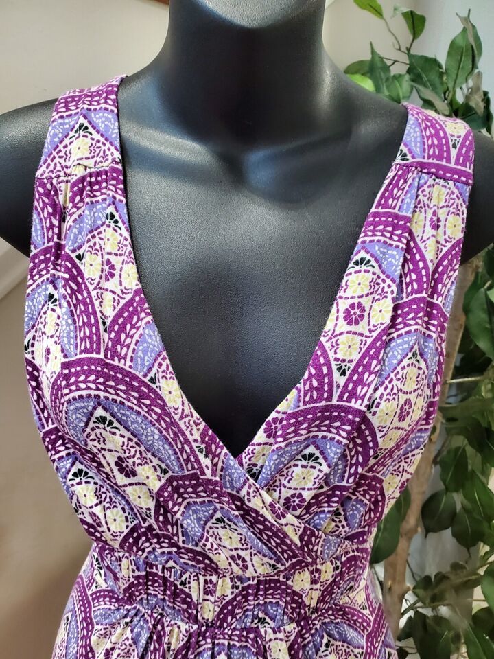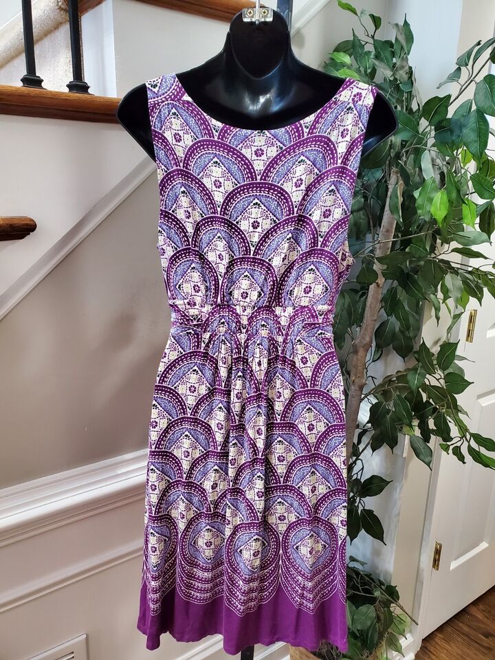 Elle Women's Purple Rayon V-Neck Sleeveless Knee Length Casual Dress Size Small