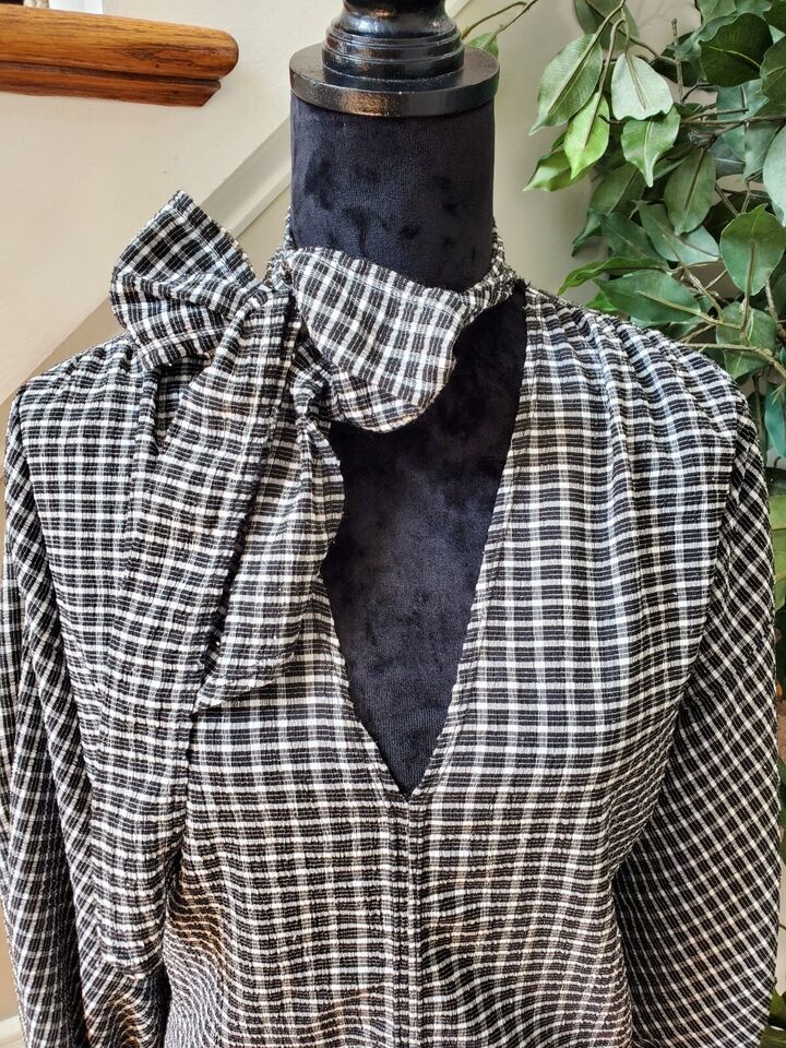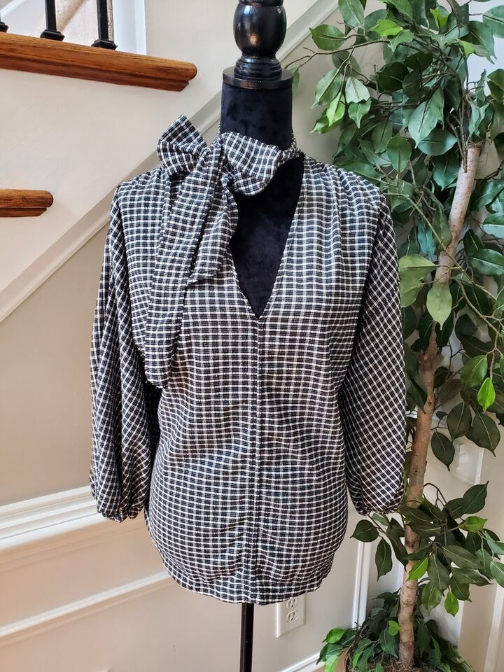 Max Studio Women Black White Polyester Long Sleeve Pullover Blouse Size Medium.
