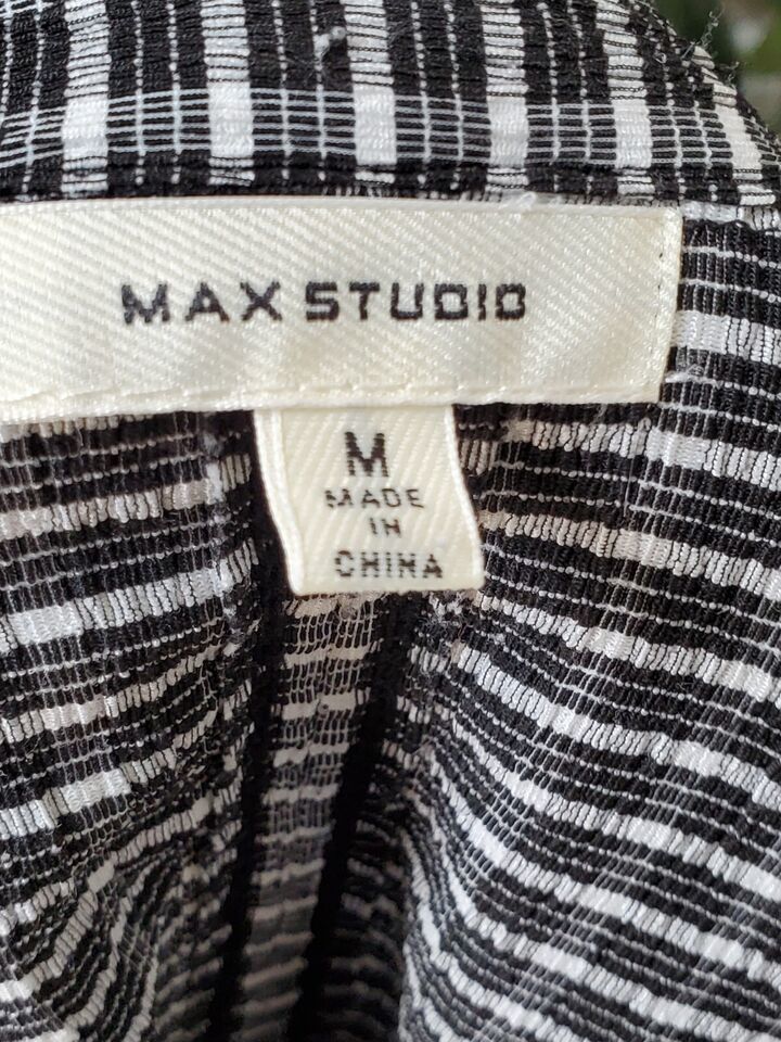 Max Studio Women Black & White Polyester Long Sleeve Pullover Blouse Size Medium