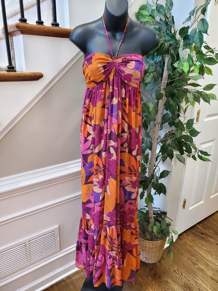 H&M Women Multicolor Polyester Halter Neck Off the Shoulder Knee Length Dress 8