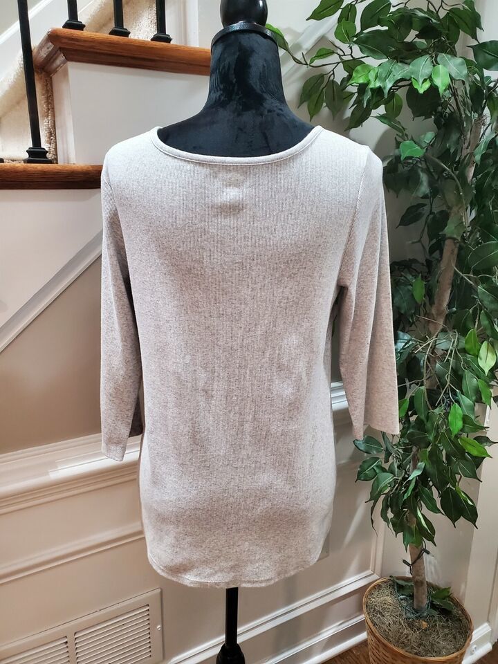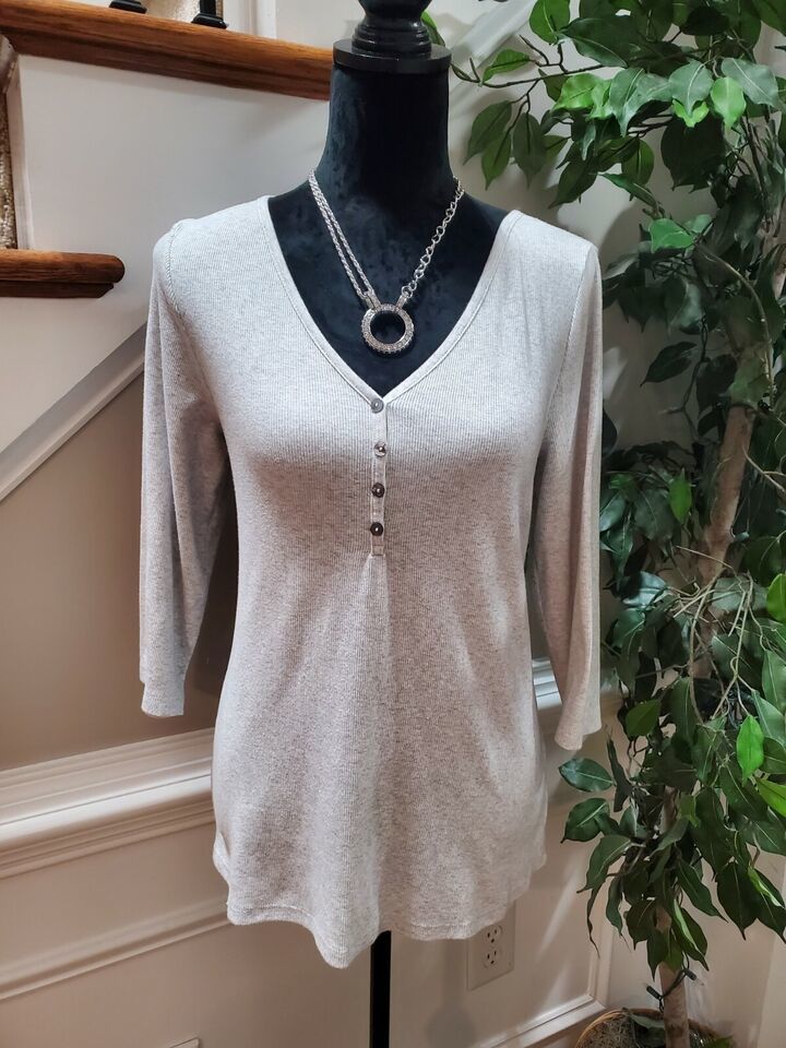 Old Navy Women's Solid Gray Cotton V-Neck Long Sleeve Slim Fit Shirt Size Large