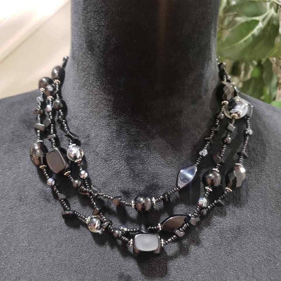 Womens Triple Strand Black Tone Gun Metal and similar items