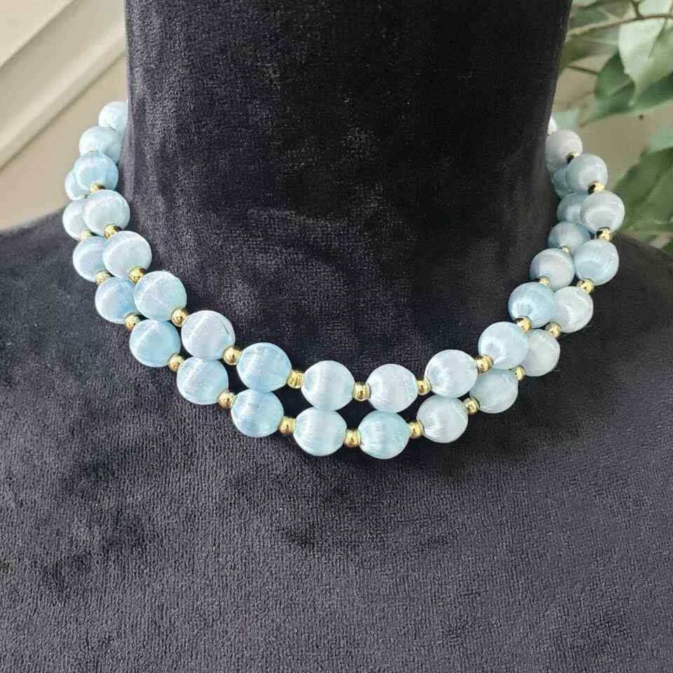 Womens Sky Blue Round Faceted Beaded Fashion Necklace