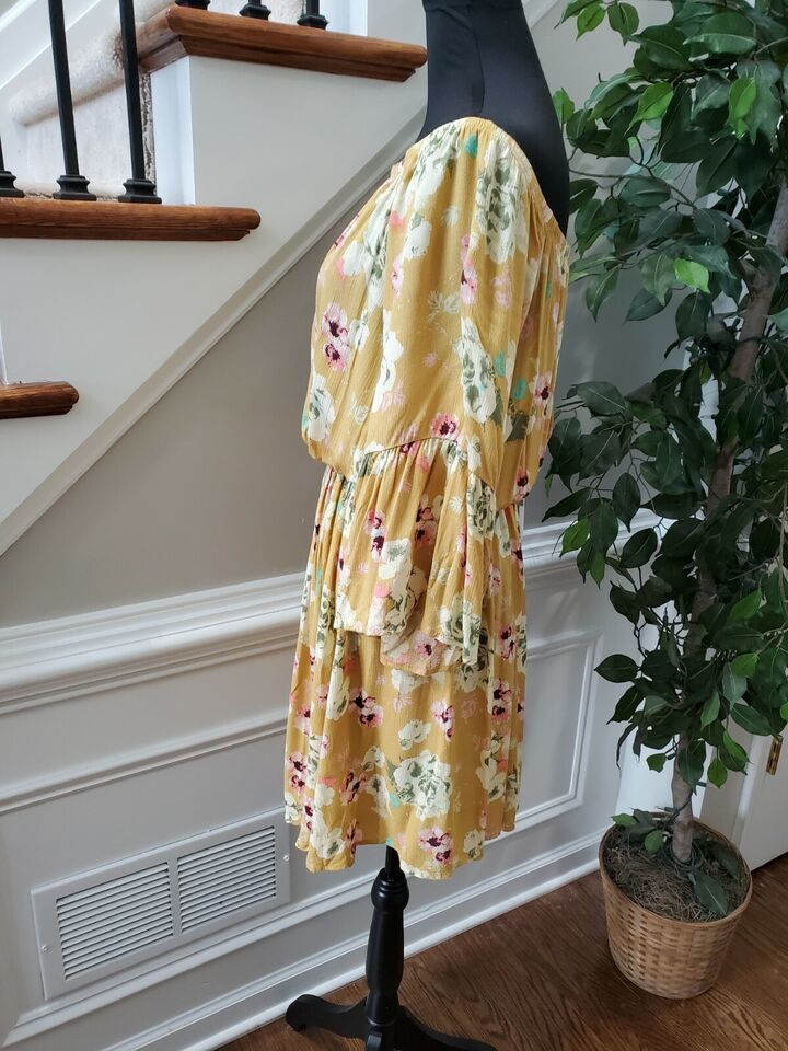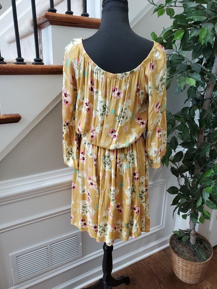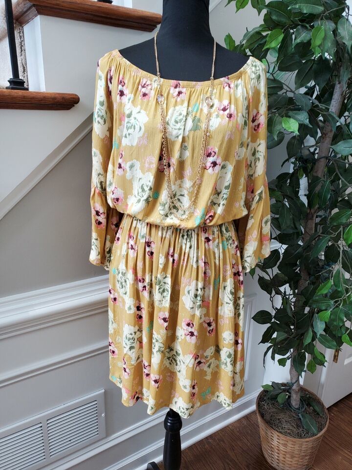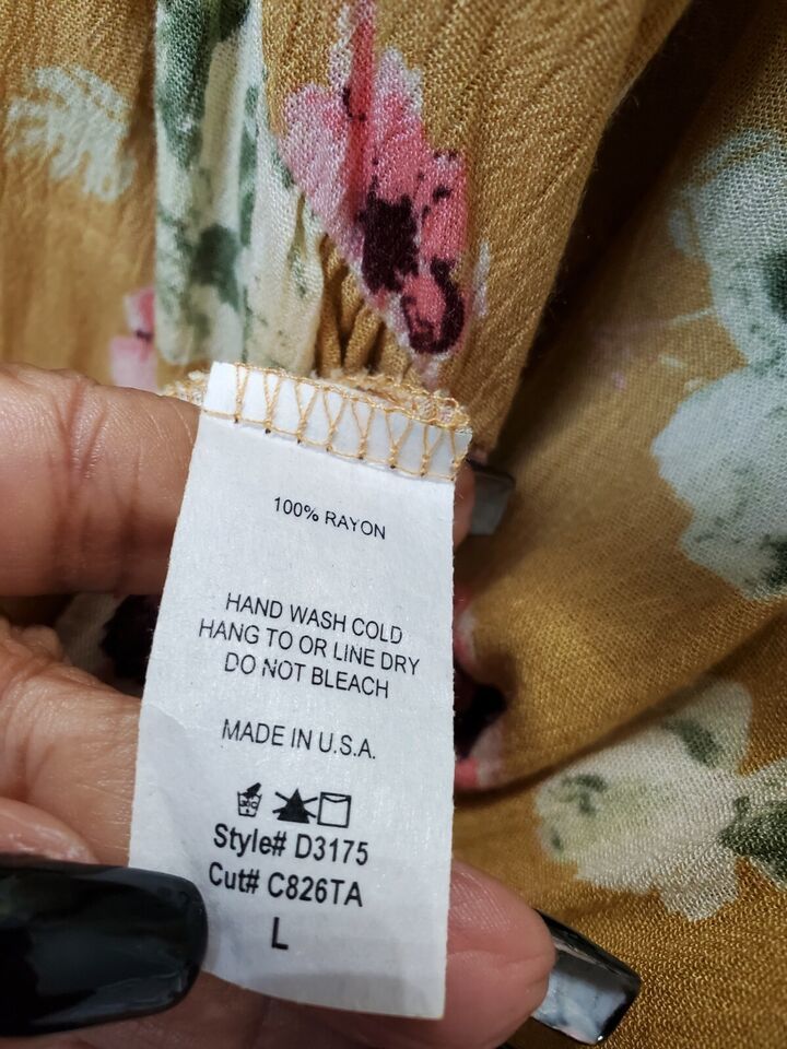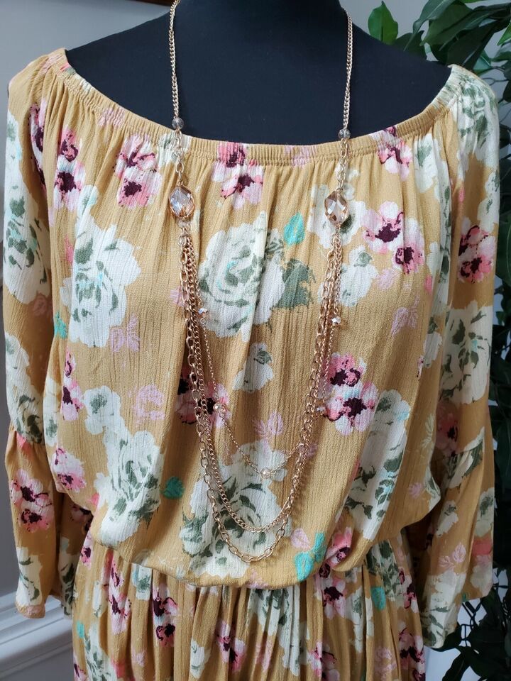 Rae Mode Women's Floral 100% Rayon Scoop Neck Long Sleeve Knee Length Dress L