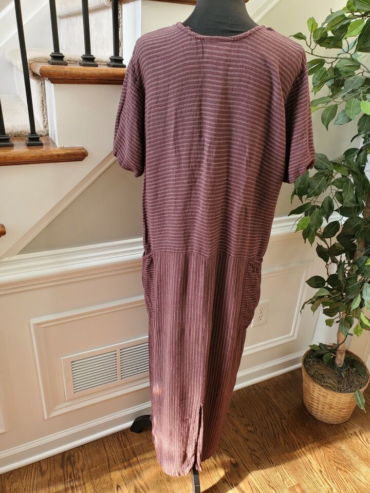Eileen Fisher Womens Maroon Linen Round Neck Short Sleeve Long Maxi Dress Size S