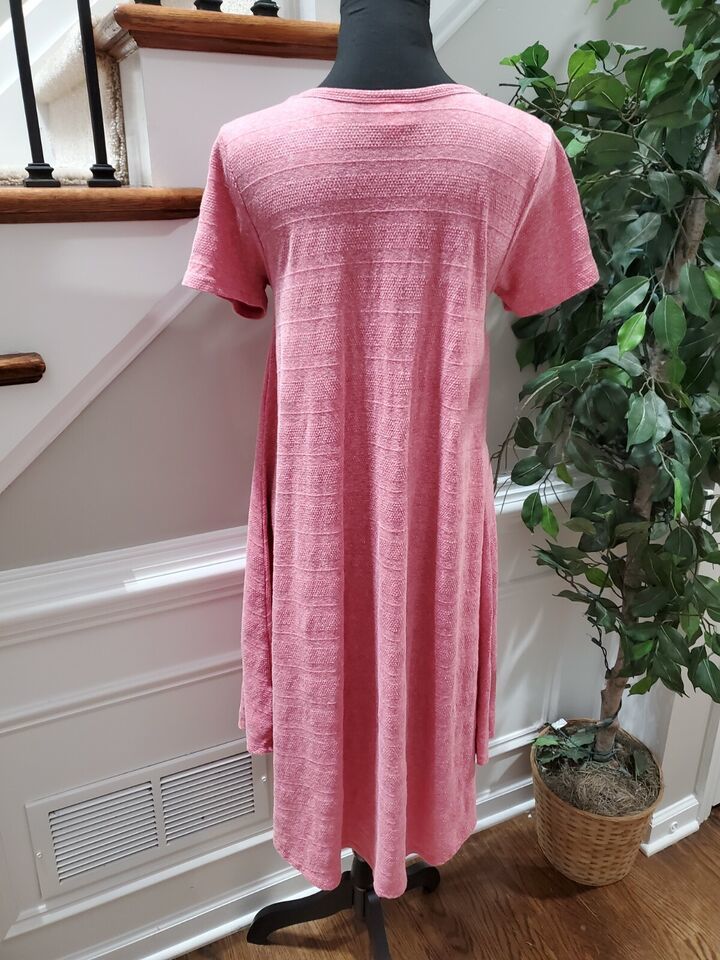LulaRoe Womens Solid Pink Polyester Round Neck Short Sleeve Knee Length Dress XS