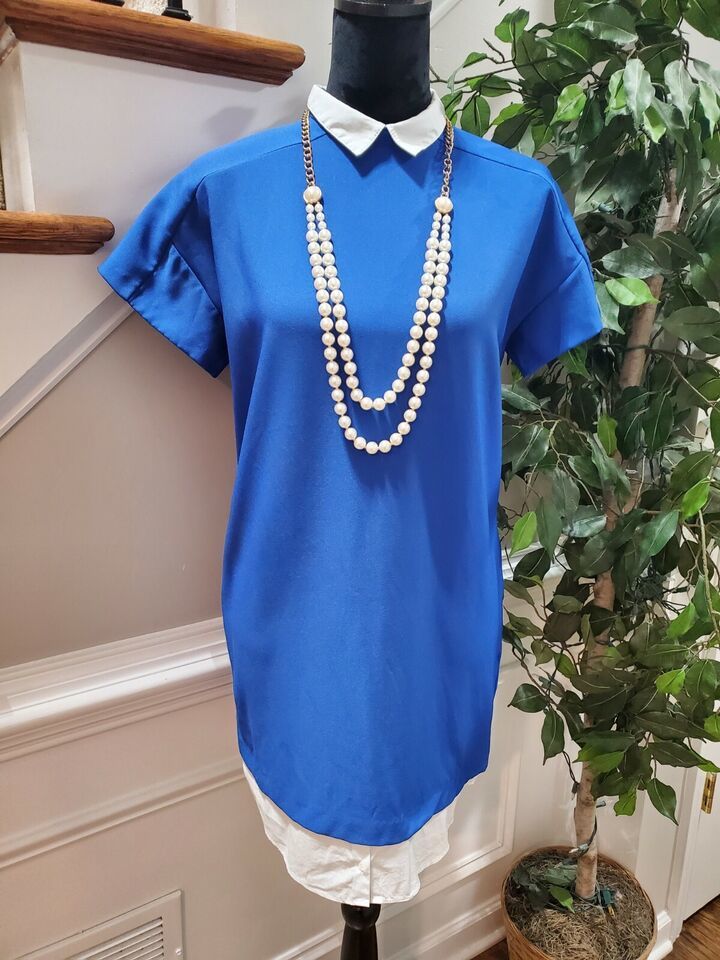Zara Basic Womens Blue Polyester Collared Short Sleeve Knee Length Dress Size XS