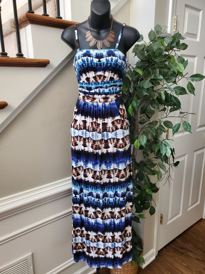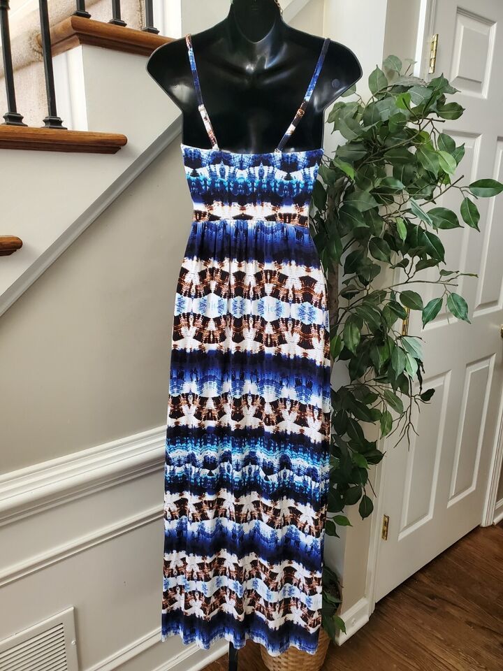 Cynthia Rowley Women's Blue Rayon Square Neck Sleeveless Long Maxi Dress Size XS.