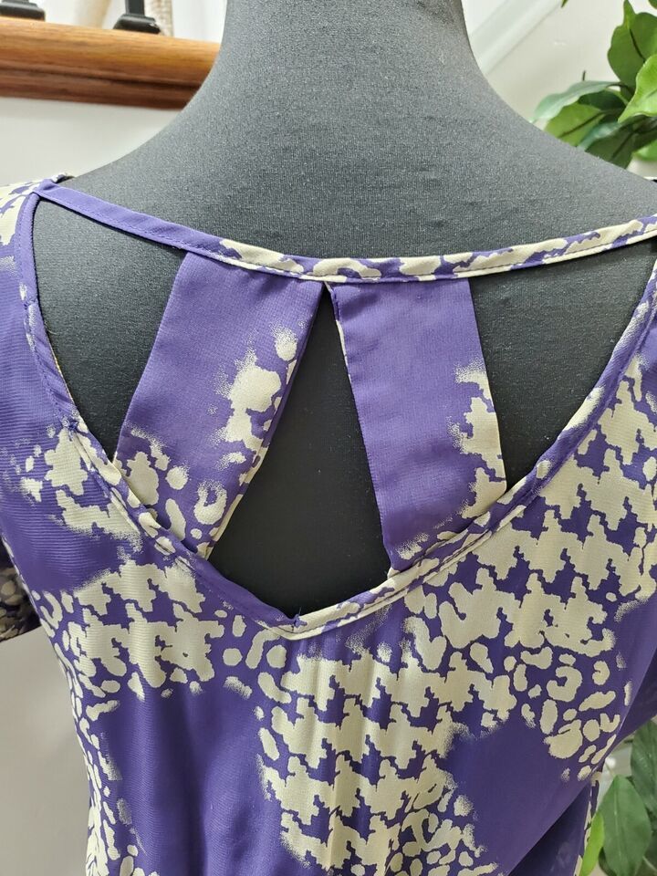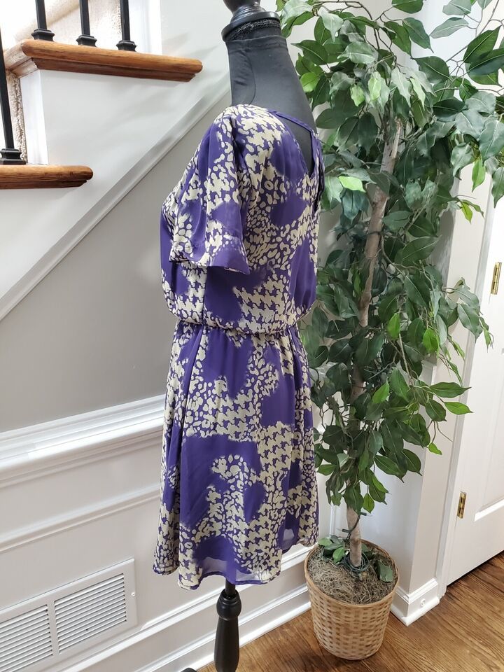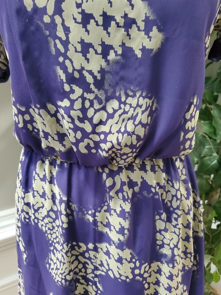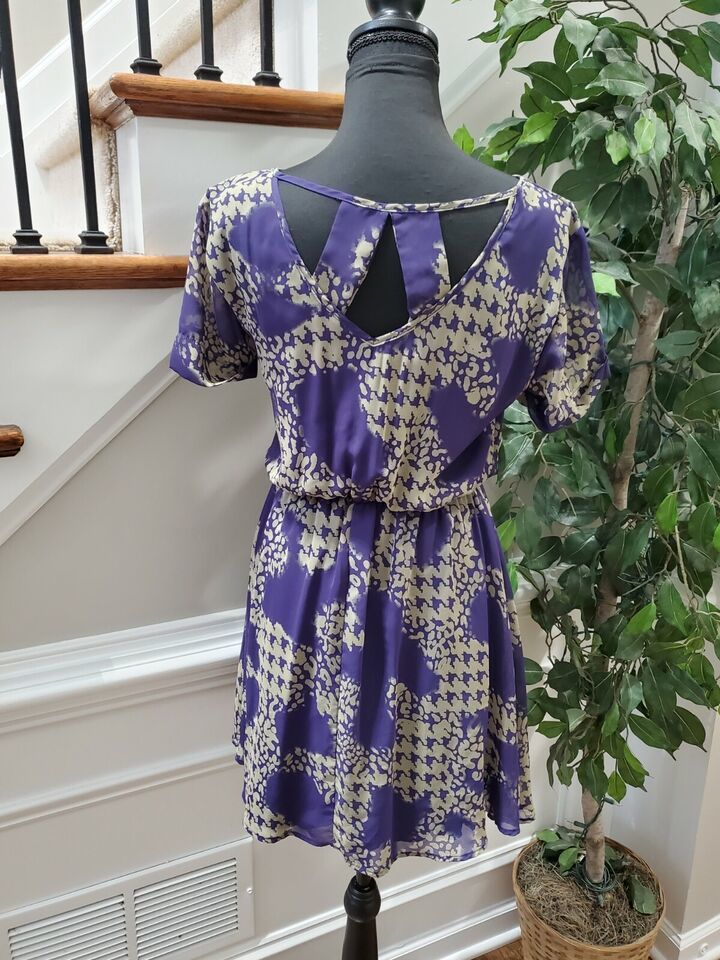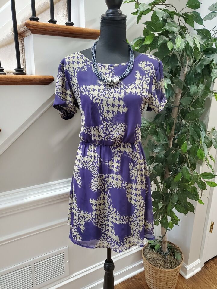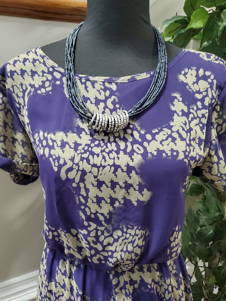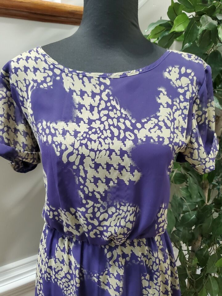 Dee Elle Women Blue & White Polyester RoundNeck Short Sleeve Knee Length Dress M