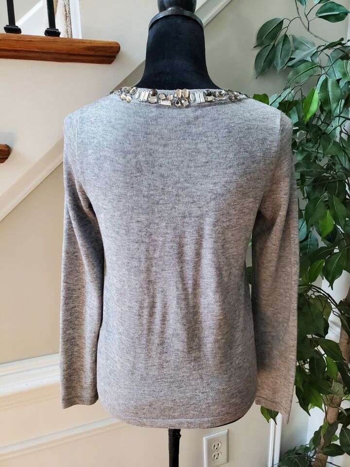 Banana Republic Women's Gray Polyester Round Neck Long Sleeve Top Blouse Size S
