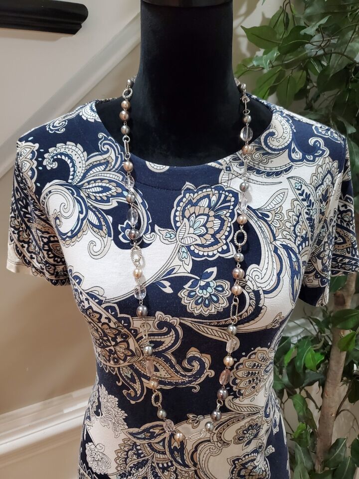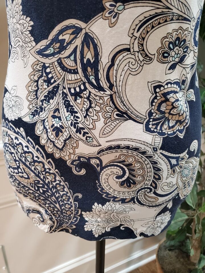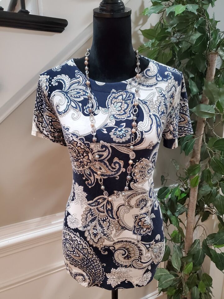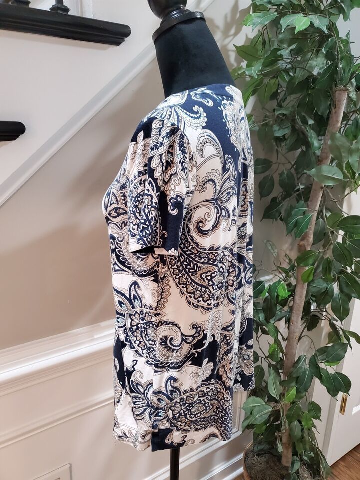 J. Jill Women's White & Blue Rayon Round Neck Short Sleeve Top Blouse Size XS