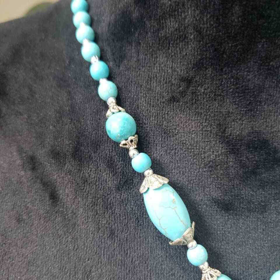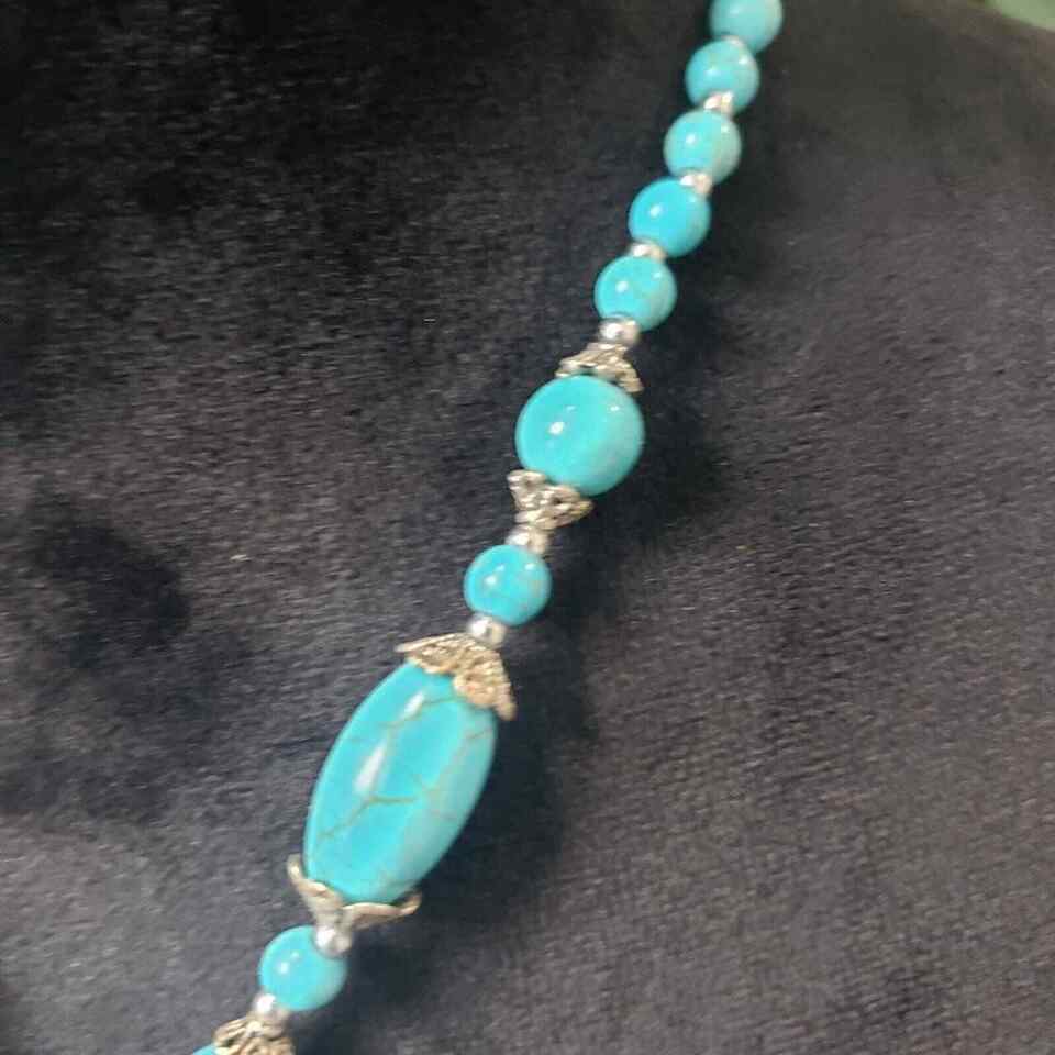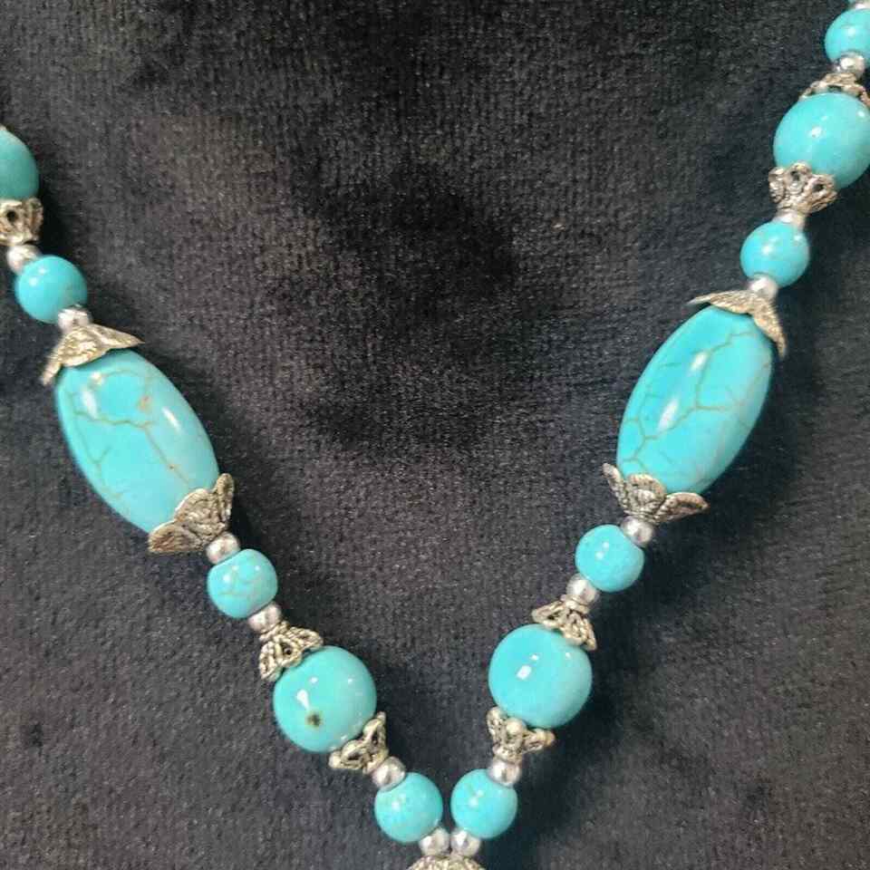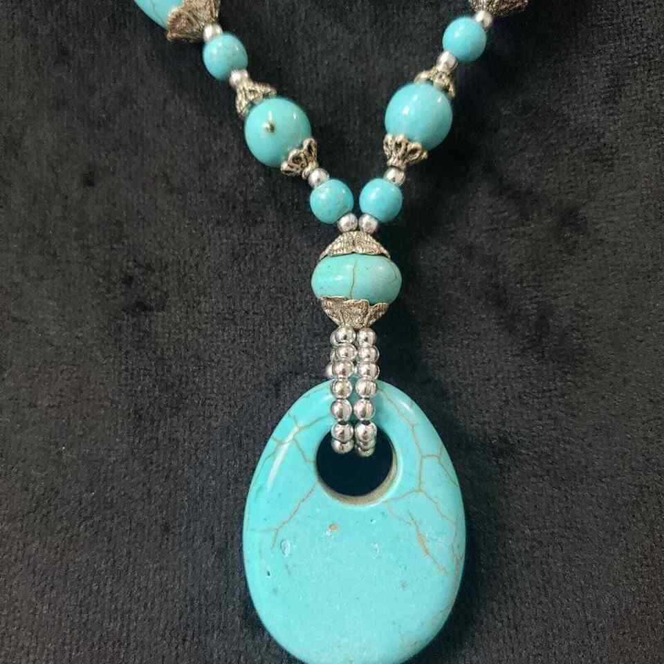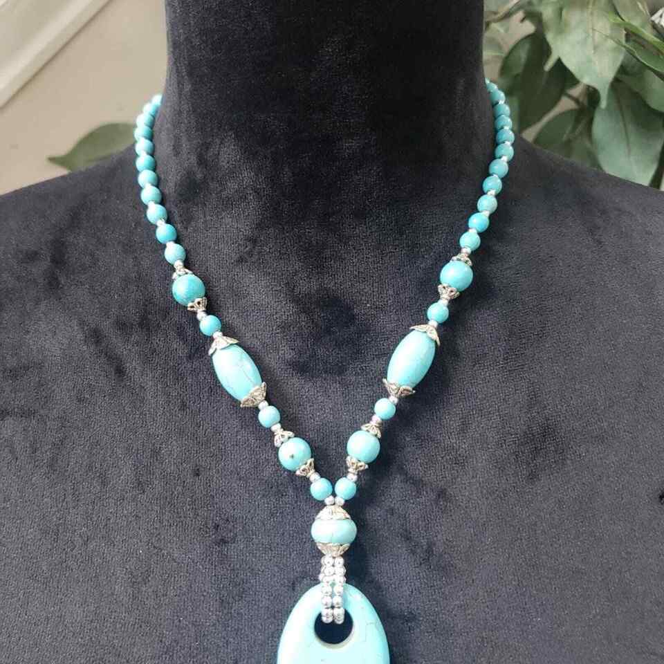 Womens Beaded Southwestern Style Faux Turquoise Pendant Necklace with Lobster