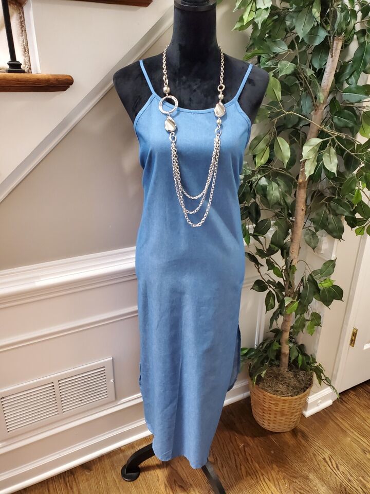 SHEIN Women's Blue Polyester Round Neck Strappy Knee Length Dress Size Medium