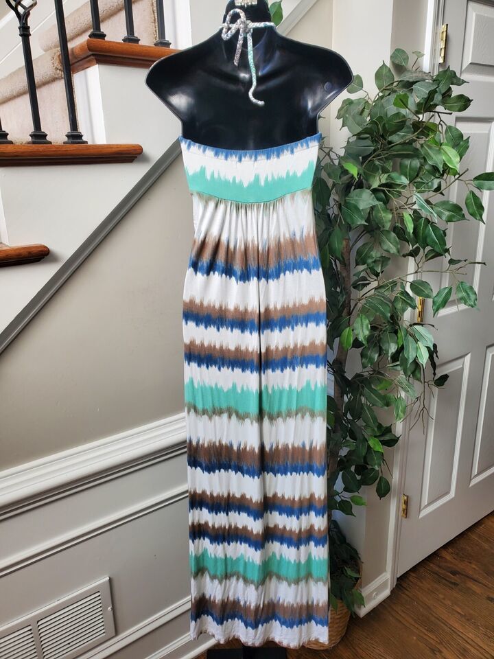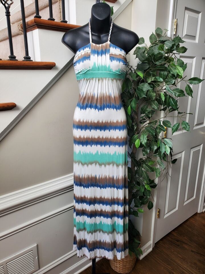 Neiman Marcus Women Multicolor Viscose Halter Neck Sleeveless Long Maxi Dress XS.