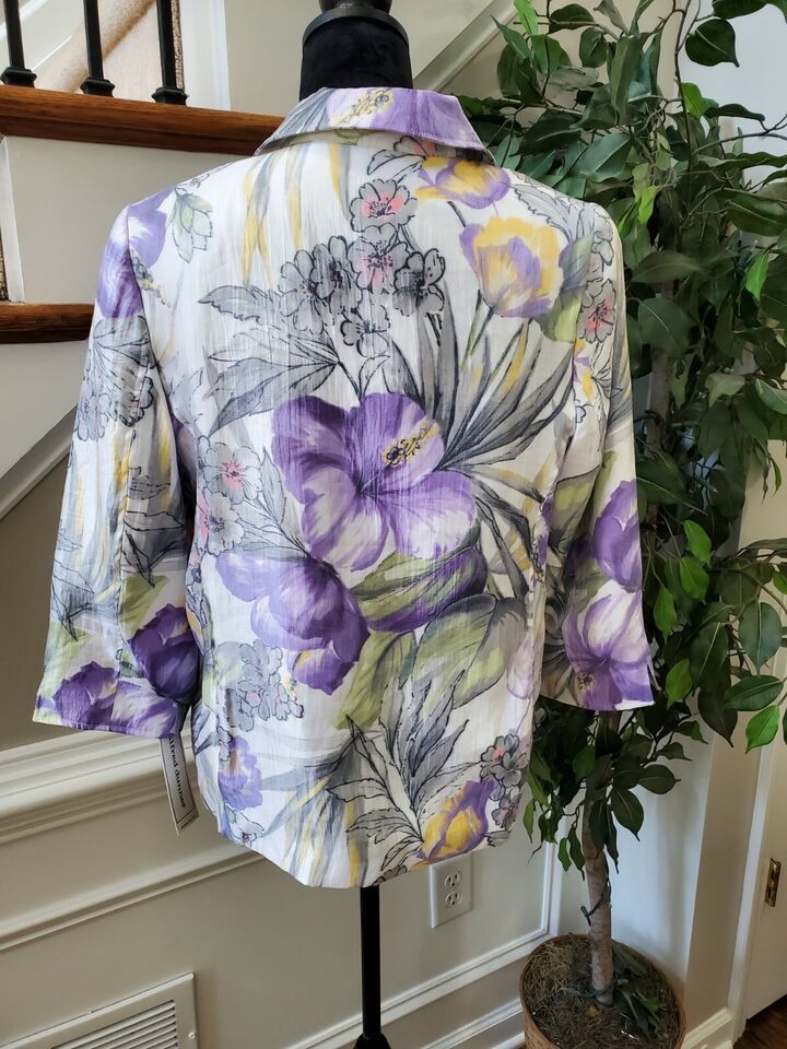 Alfred Dunner Women's Multicolor Floral Rayon Open Front Jacket Blazer Size 10
