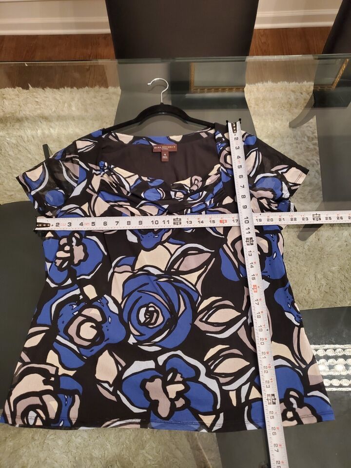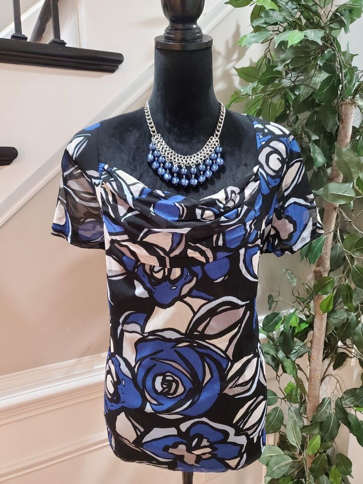 Dana Buchman Womens Multicolor Floral Nylon Cowl Neck Short Sleeve Top Blouse 1X.