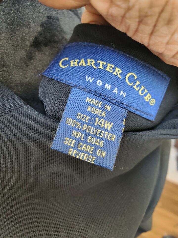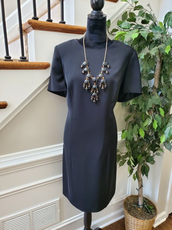 VTG Charter Club Black Polyester Round Neck Half Sleeve Knee Length Dress 14W
