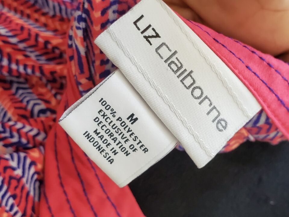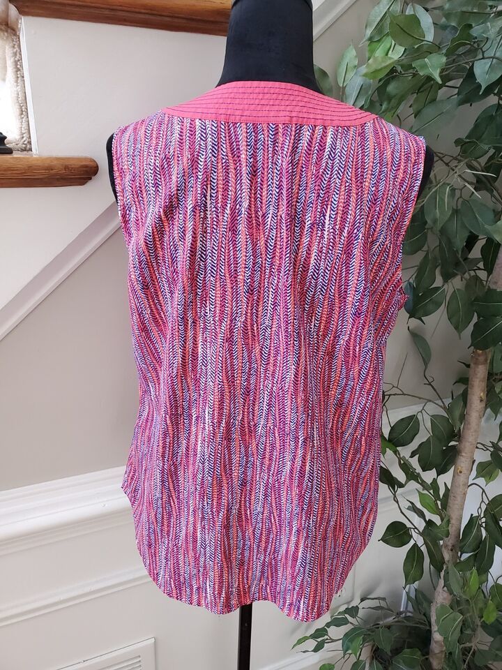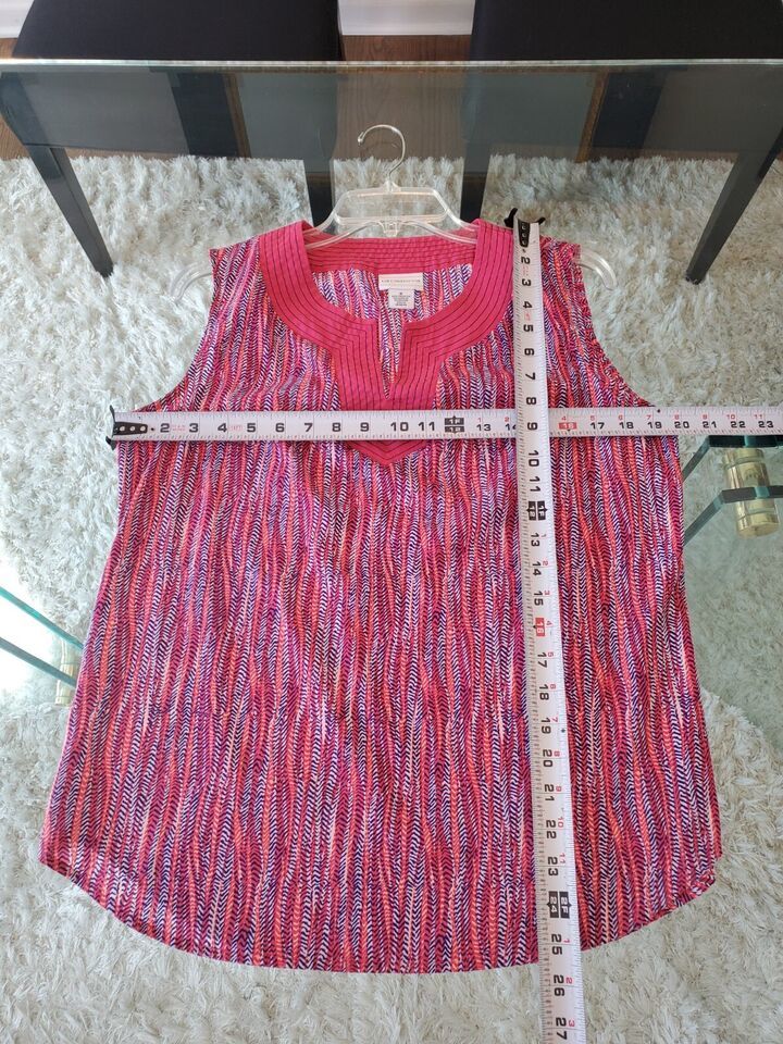 Liz Claiborne Womens Multicolor 100% Polyester V Neck Sleeveless Top Blouse Sz M