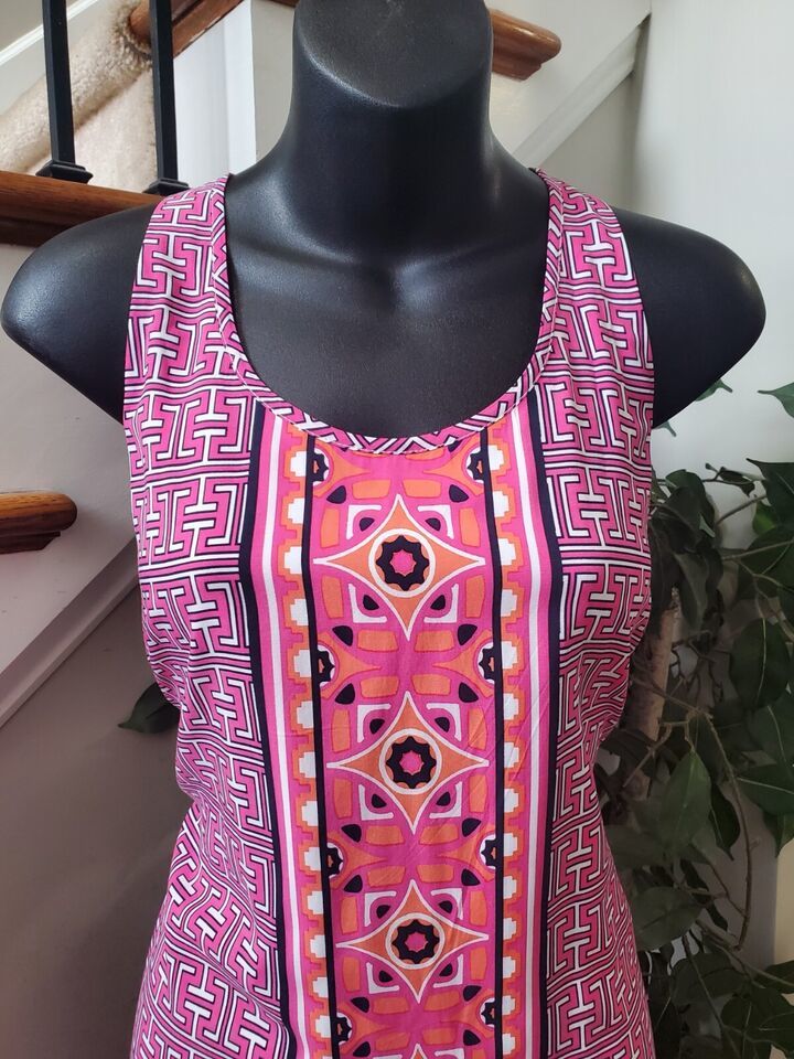 Crown & Ivy Womens Pink Rayon Round Neck Sleeveless Knee Length Dress Size Large