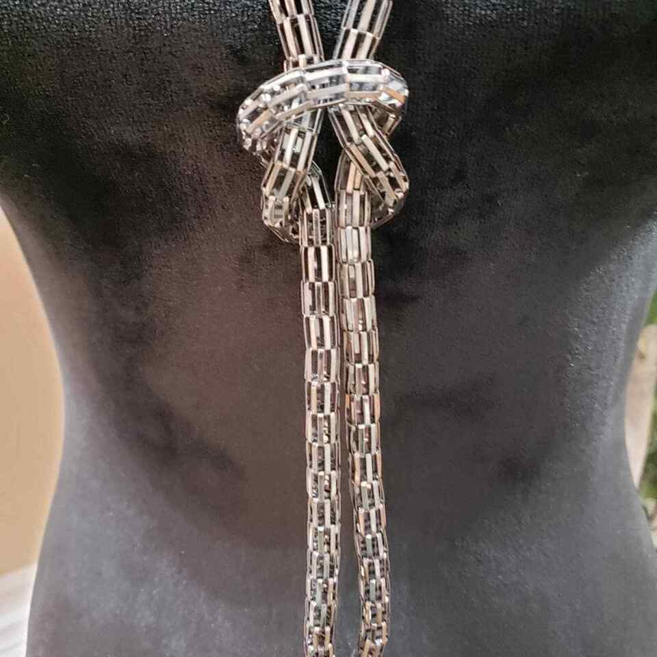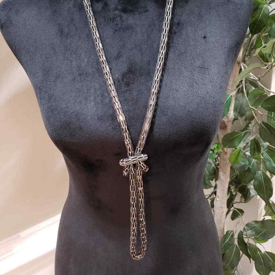 Womens Modern Fashion Chunky Silver Tone Elegant Knot Long Chain Necklace