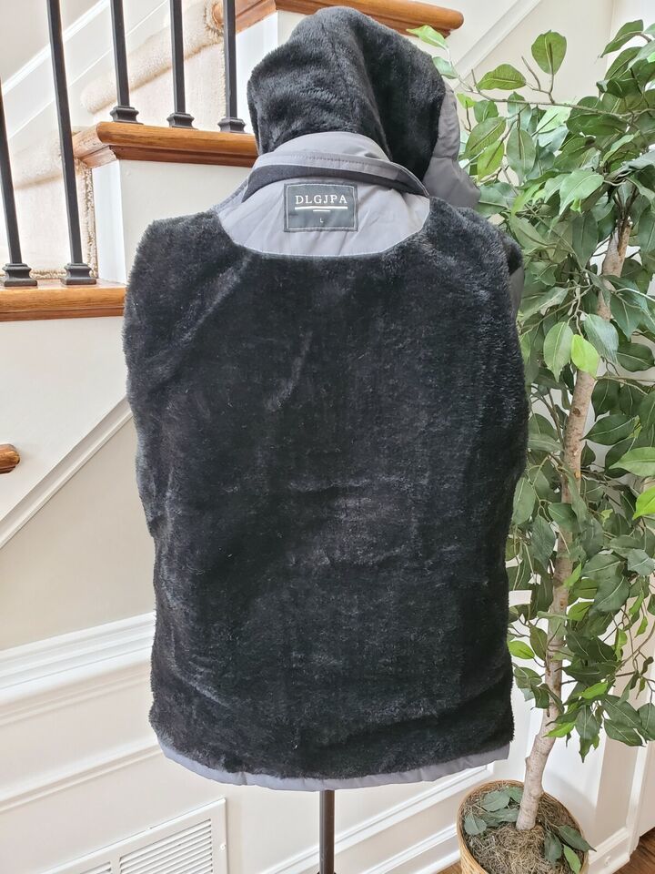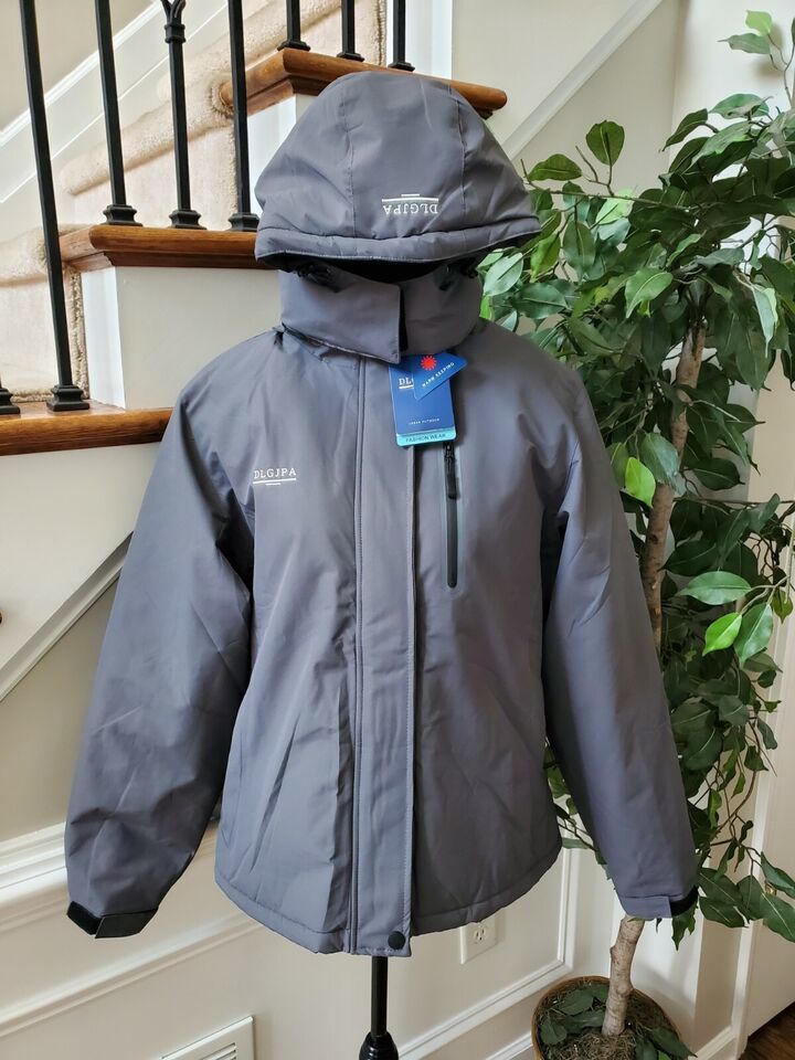 DLGJPA Women's Solid Gray Polyester Long Sleeve Full Zip Casual Jacket Size L