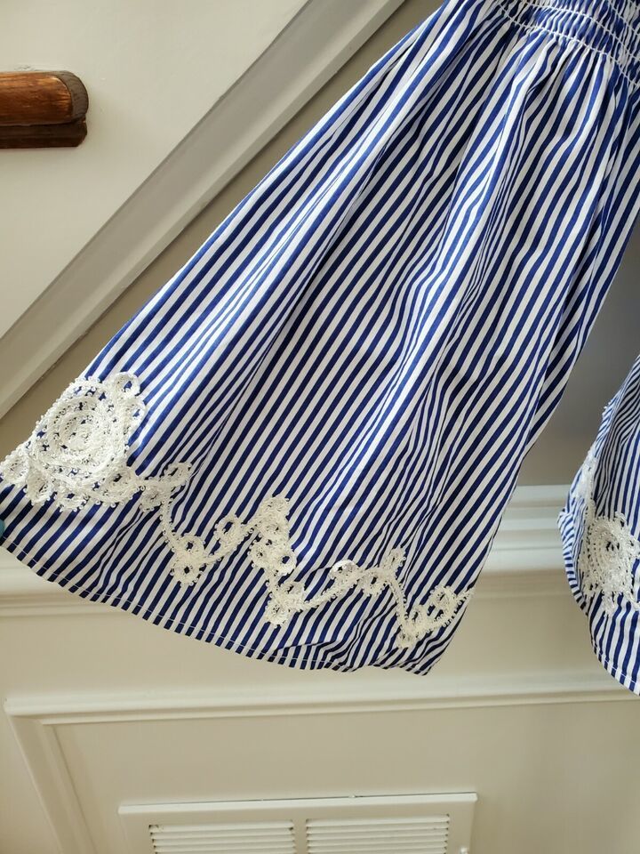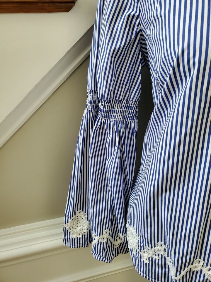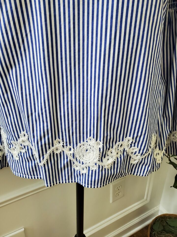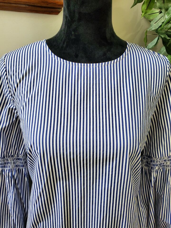 Crown & Ivy Women's Blue & White 100% Cotton Round Neck Long Sleeve Blouse Small