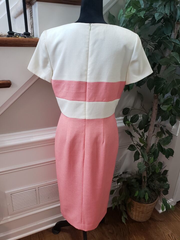 Worthington Womens Pink White Wrap V Neck Back Zipper Knee Length Dress Size 10.