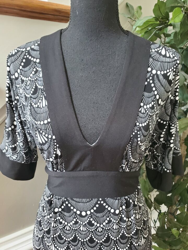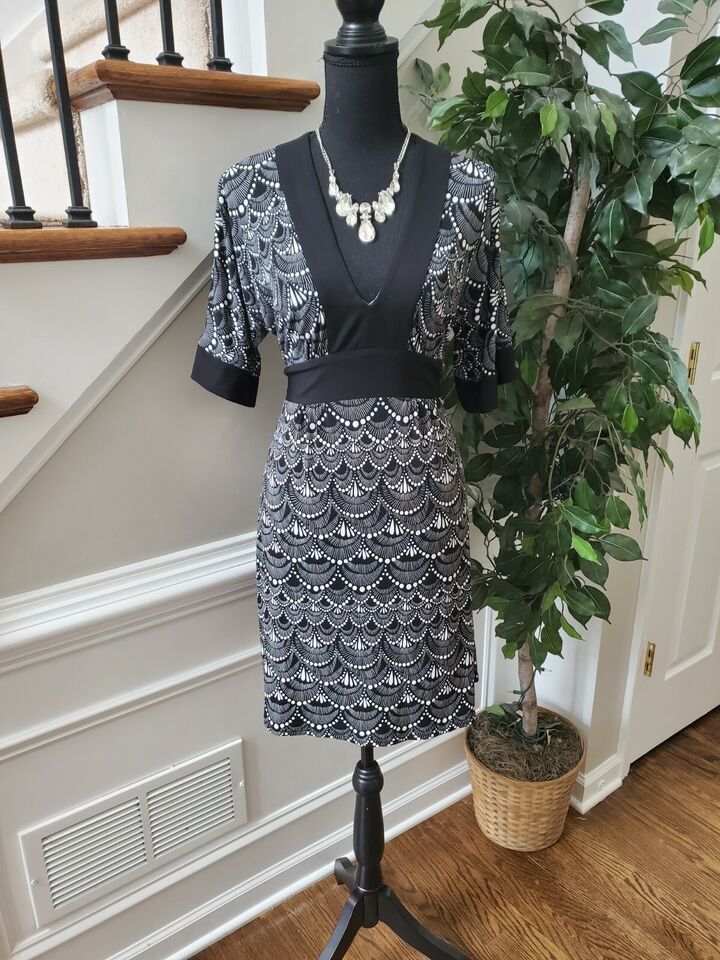 Noticeable Women's Black/White V-Neck Formal Half Sleeve Midi Dress Size Medium.
