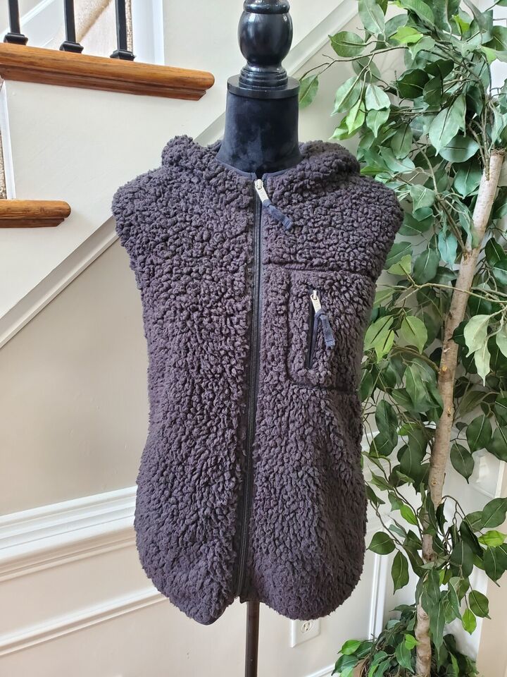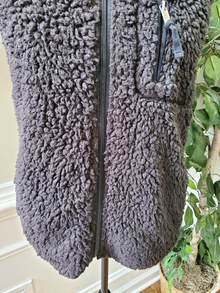 Vintage Hooded Black Polyester Sleeveless Full Zip Front Casual Jacket Size XL